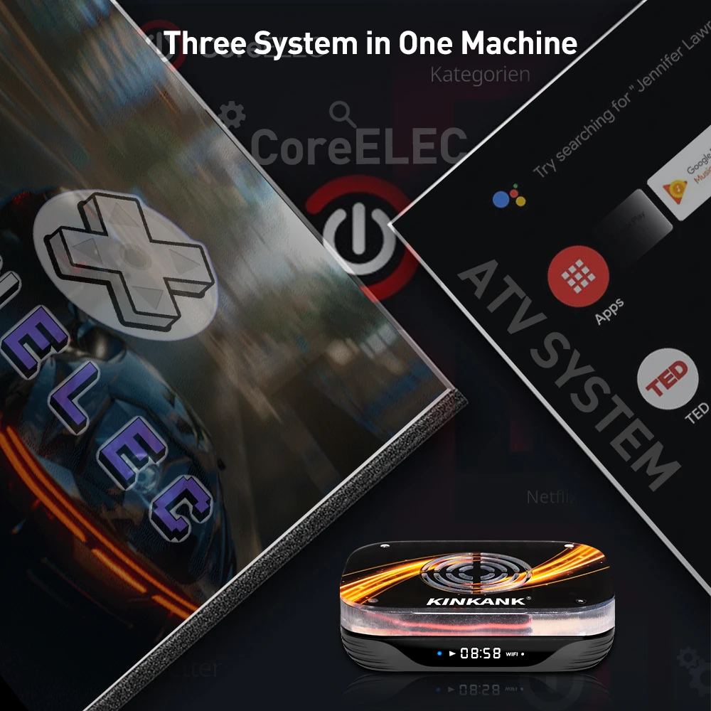 Super Console X3 Plus поставляется с системой Emuelec 4,5 и Android и CoreElec. Вы можете не только играть в ретро-игры, но и переключаться на ТВ-приставка, когда вам надоело играть. И вы можете смотреть фильмы через CoreElec.