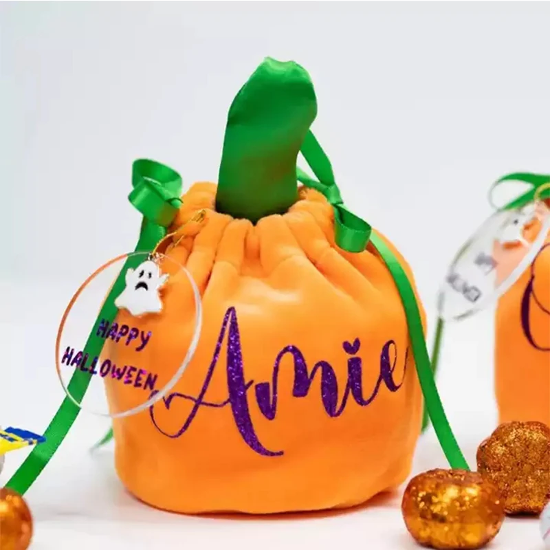 Бархатная конфетная подарочная упаковка в виде тыквы на Хэллоуин, сумка для хранения печенья со шнуровкой, украшение для фестиваля, подарок для детей, 2022