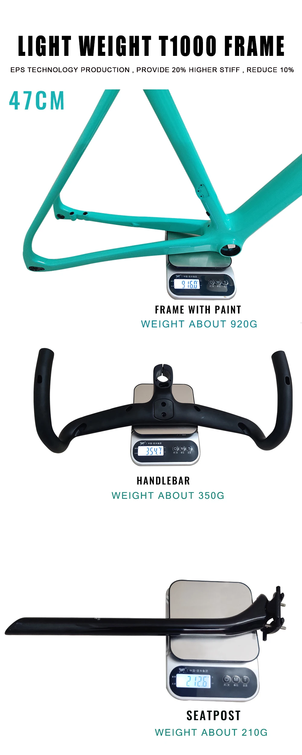 frame weight : raw bike frame size 47cm 820g , raw fork 350g , raw seatpost 150g