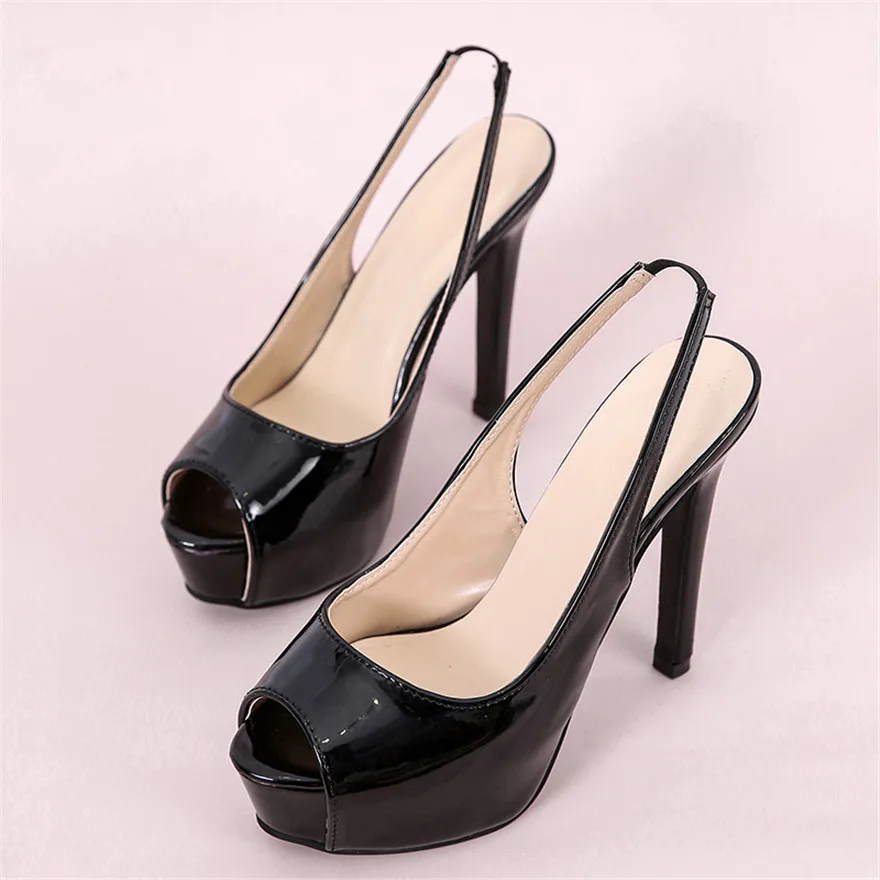 Женские туфли-лодочки из лакированной кожи на высоком каблуке с открытым носком; Сезон осень; Модные вечерние туфли на платформе с ремешком сзади; Женские рабочие туфли с открытой пяткой