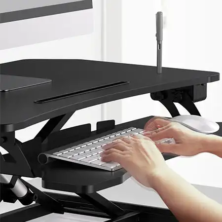 Этот Регулируемый Настольный конвертер обеспечивает эргономичный просмотр и ввод углов, помогая снять напряжение мышц и предотвратить повреждение поясничного отдела позвоночника, позволяя вам работать более комфортно в течение дня.