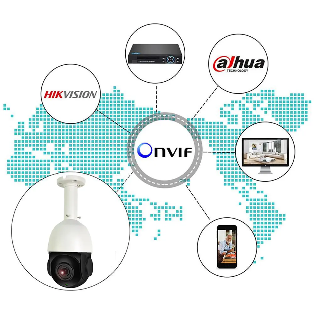Технология ONVIF гарантирует, что камера может работать со многими сторонними вечерние NVRs, которые также поддерживают ONVIF, вы можете использовать эту камеру вместе с другими камерами или системами.