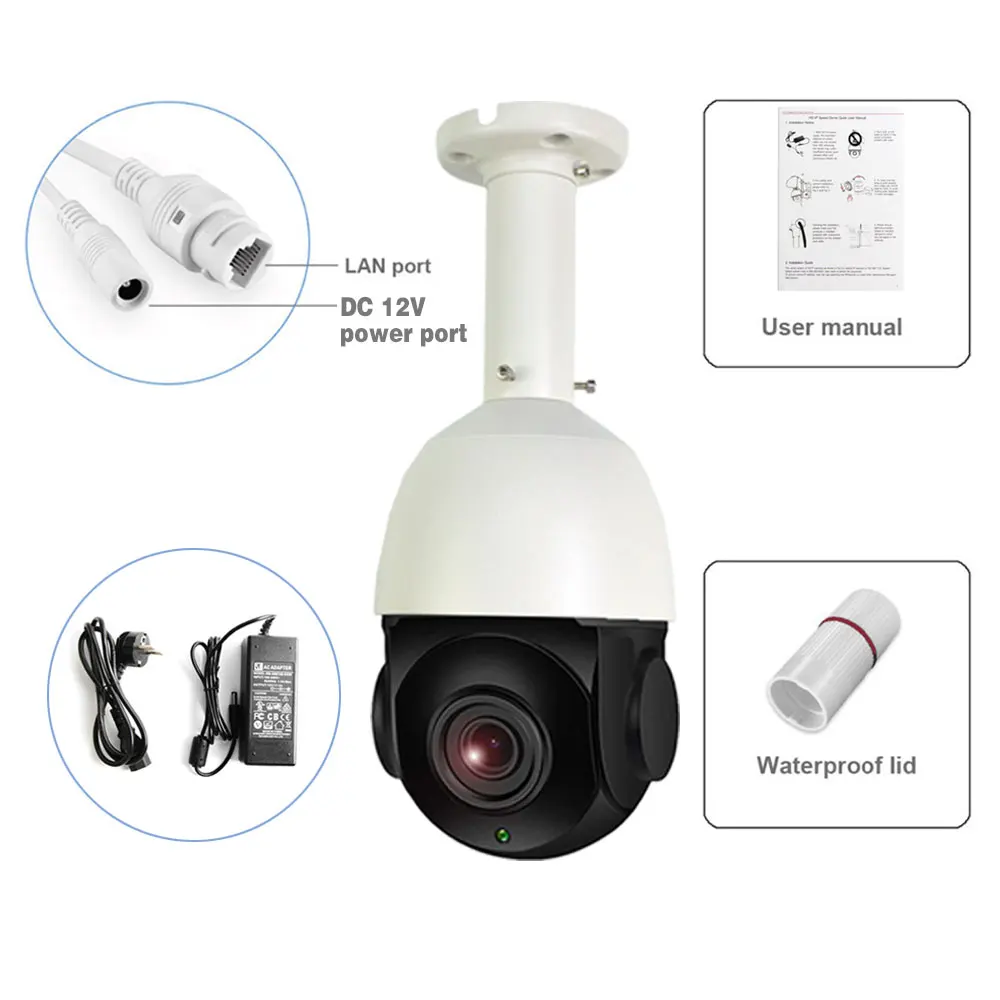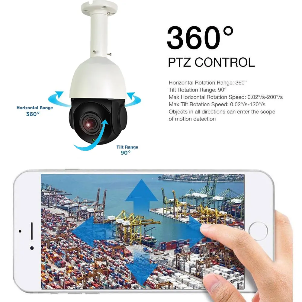 Функция оптического зума 30X обеспечивает возможность фокусировки на мелких деталях, таких как лица или номерные знаки. 360 ° по горизонтали и 90 ° по вертикали панорамирование и наклон удаленно через телефон/планшет/ПК, который предлагает вам меньше слепой области зрения.