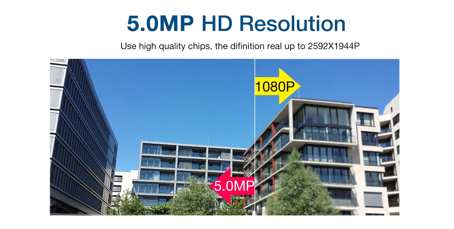 Высокое разрешение, намного четче 1080p и 720p. Все камеры предлагают невероятно четкие и яркие изображения реальных цветов, что позволяет очень четко видеть все предметы.