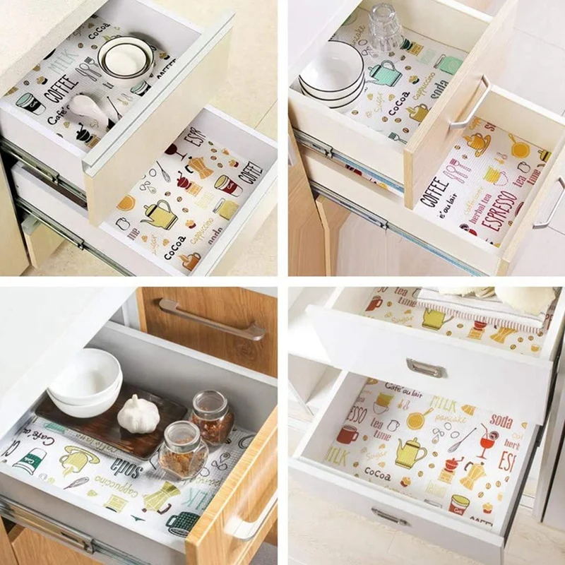 Бесплатная резка --- вы можете просто обрезать подкладку ящика полки с помощью бытовых ножниц, разрезаемых в разной форме в соответствии с вашими потребностями, удобно устанавливать, заменять и перемещать без хлопот.