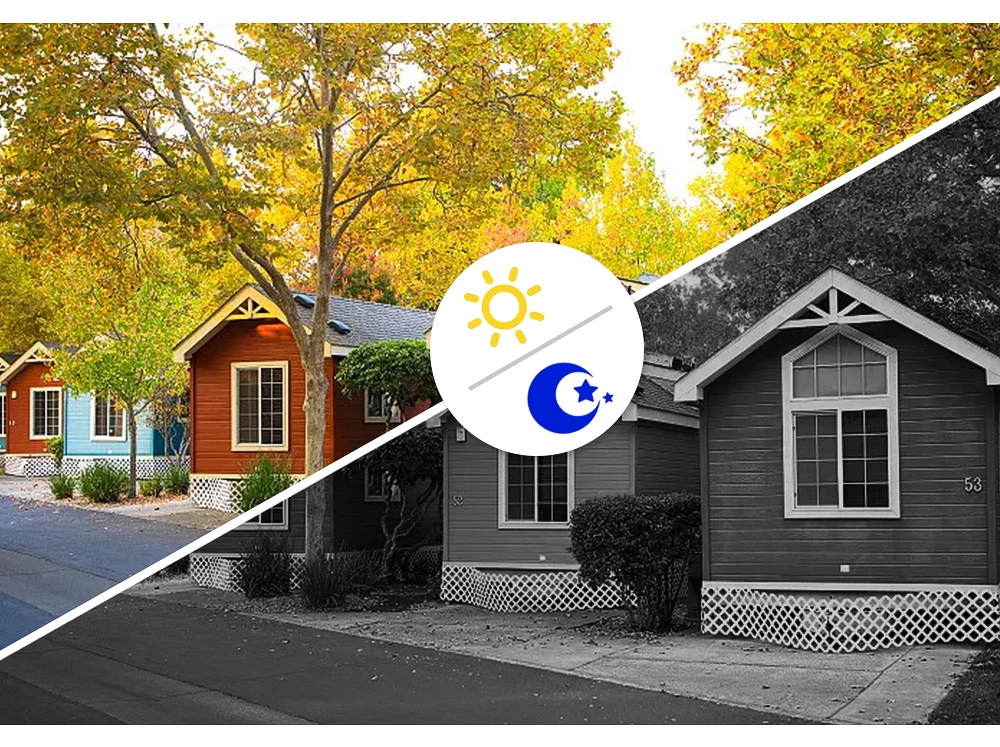 The smart IR-Cut filter switches automatically between day and night toreduce color cast in day time and enhance image brightness at night making sureyou can get vivid surveillance footage from dawn to dark.