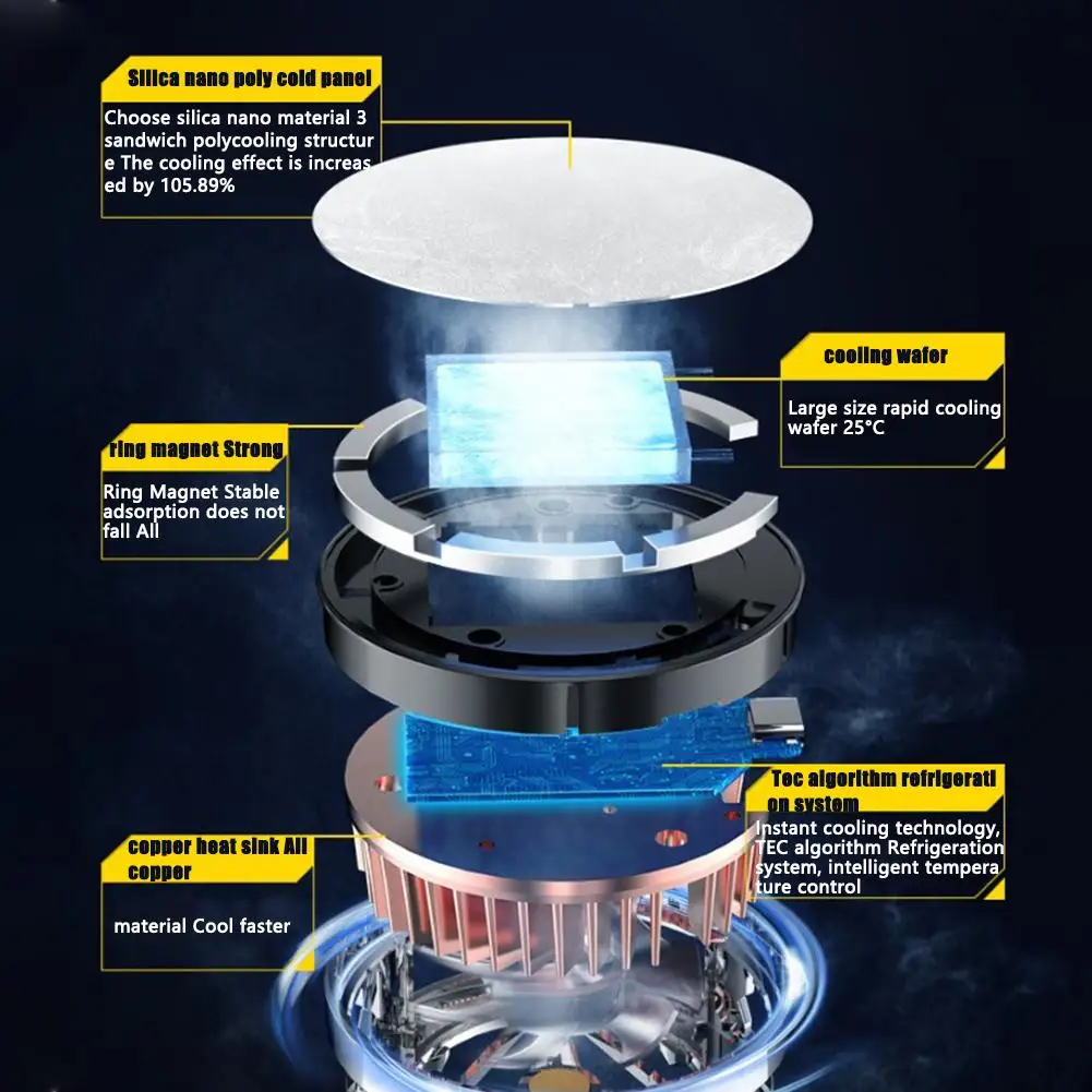 2. Холодный окружающий светильник RGB: Встроенный классный светильник RGB, дизайн, подходит для геймеров. Цветности этот мобильный телефон радиатор может показать очаровательный красочный светильник с низким уровнем светильник окружающей среды, благодаря чему e-спортивных игр полную атмосферу. Кроме того, он также соответствует стандарту беспроводной зарядки Qi, который полностью защищает мобильный телефон во время процесса беспроводной зарядки.