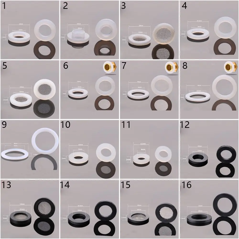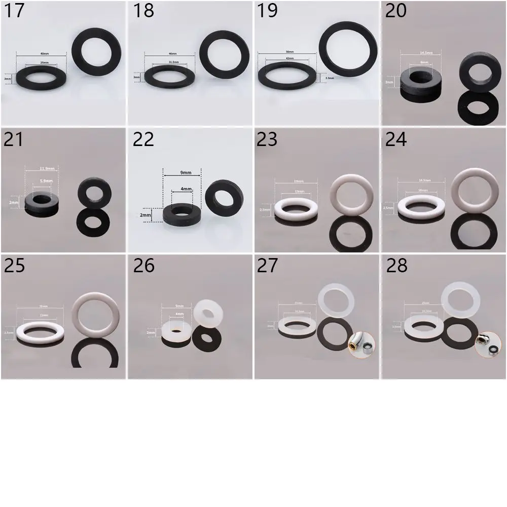 Название: силиконовая прокладка Цвет: белый, черный Материал: силикон, резина, ПТФЭ Размер: для 1/4 ",3/8",1/2 ",3/4",1 "гнездовой резьбовой соединитель Характеристики: хорошая герметизация, термостойкость и устойчивость к экструзии Посылка: 10 шт. Примечание: Пожалуйста, внимательно проверьте размер перед покупкой. Из-за различных мониторов цвет изображения может немного отличаться от фактического цвета изделия.