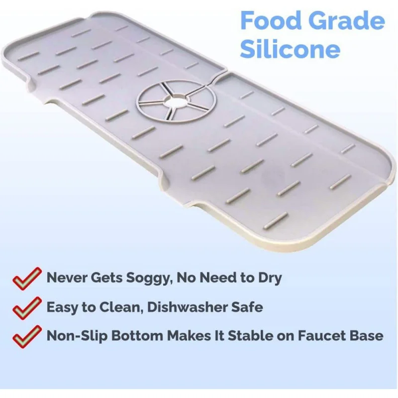 Держите столешницу сухой: после использования крана, прекратите протирать столешницу раковины! Держите столешницу чистой и сухой в любое время с помощью наших силиконовых водопоглощающих подушечек. Кроме того, вы можете разместить моющее средство на коврике, чтобы предотвратить утечку.