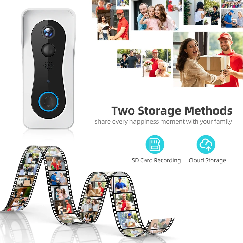 【 2 варианта хранения и защита от атмосферных воздействий IP55 защита от атмосферных воздействий, дверной звонок HeimVision защищает каждый дюйм вашего дома через каждый сезон в снегу или сиянии. Для хранения видео, он поддерживает tf-карту, макс. 128 Гб (не входит в комплект). Он также поддерживает зашифрованное Облачное хранилище в течение одного месяца.
