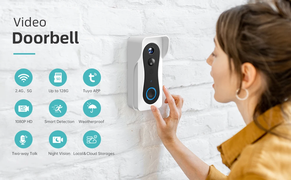 2,4G/5G беспроводной сигнал поставляется с видео дверным звонком, поместите его в любое место в вашей столовой, спальне или кухне, вы не пропустите ни одного посетителя