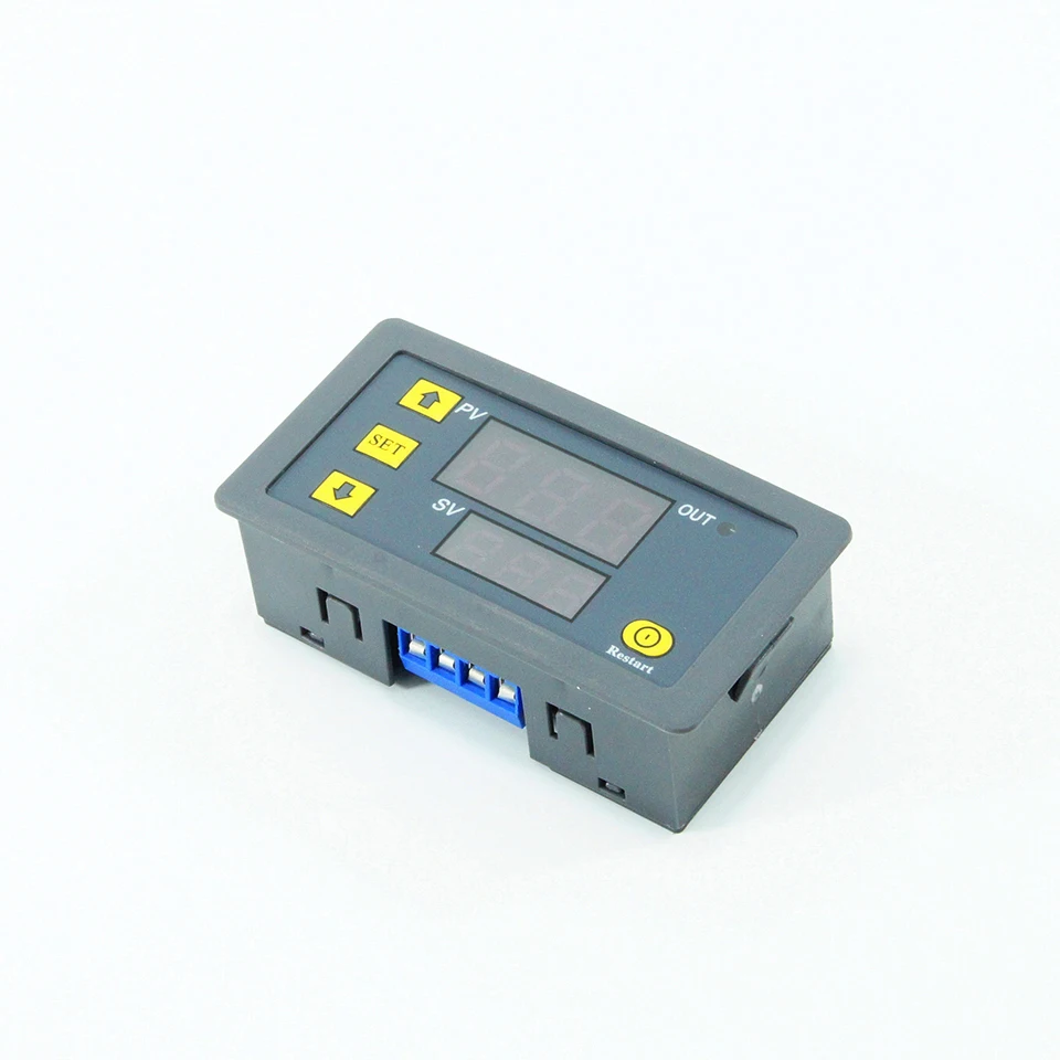 (1) Нажмите кнопку SET, чтобы войти в режим настройки времени, мигает цифровая трубка, и кнопки plus или минус отрегулируйте время T1 и время T2. После установки времени, вы должны ждать 5s, и модуль будет автоматически запоминать, чтобы сохранить данные после 5s.