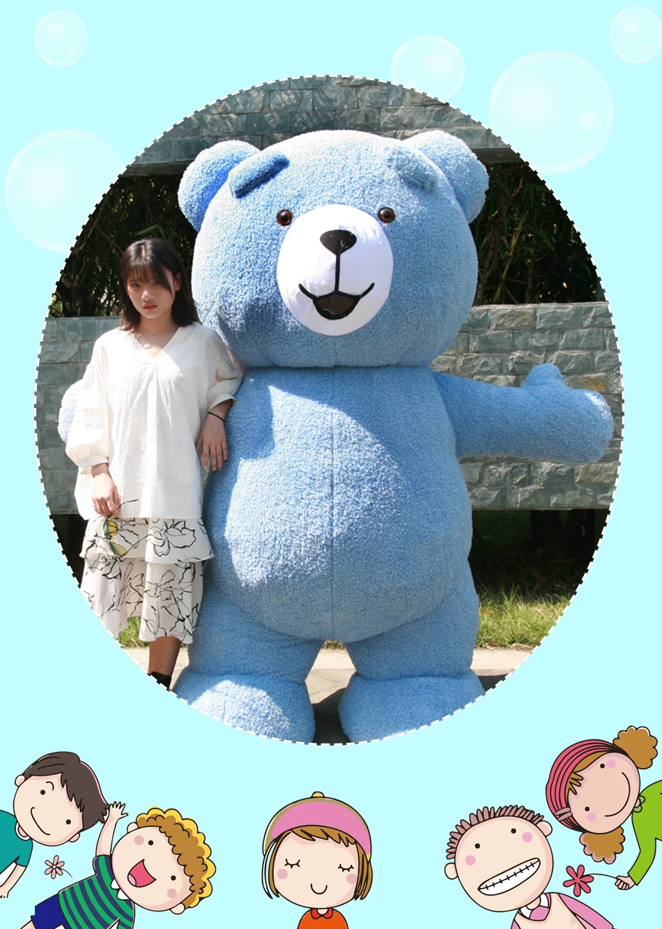 2 м плюшевый мишка после надувания: синий цвет