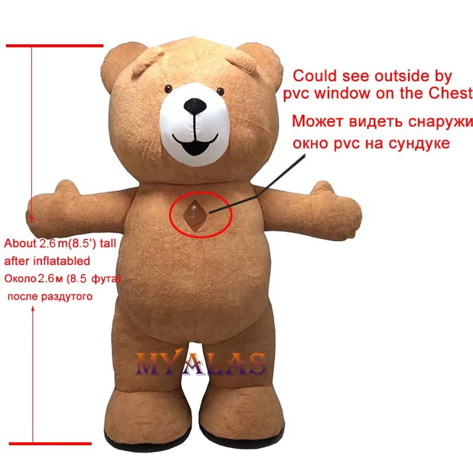 2,6 M Высота Teddy bear после inflatabled, подходит 1,65 m до 1,85 m для взрослых с вентилятор-1 шт. (если вам нужен 1 шт перезаряжаемую батарею 12V, аккумуляторную батарею, ноНе включает батарейки)