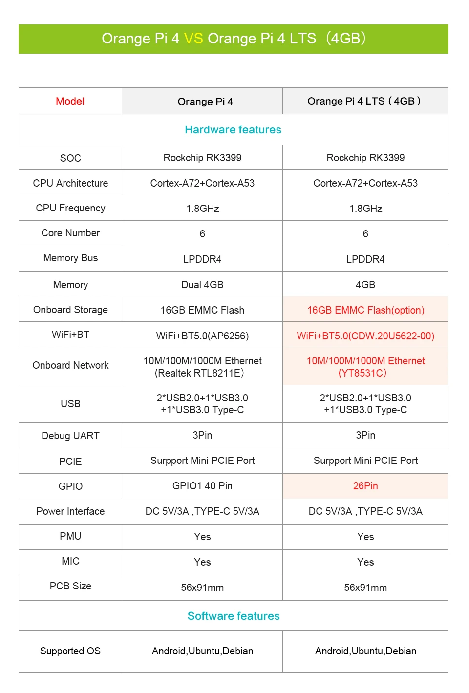Orange Pi 4 LTS 4 Гб LPDDR4 16 Гб EMMC Rockchip RK3399 Cortex-A72 A53 Wifi + BT5.0 Gigabit Ethernet Поддержка Android Ubuntu Debian OS