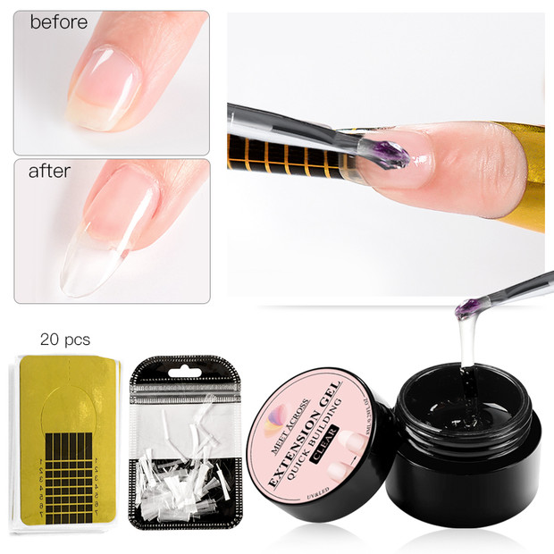 5. Нанесите Быстрый Удлинительный гель на весь ноготь и Расширьте его до желаемого положения, затем высушите его под светодиодный лампой около 30 секунд.