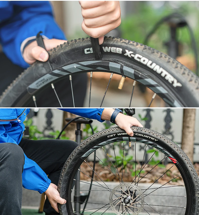3. Воздушная насадка проходит через отверстие обода, внутренняя трубка постепенно устанавливается во внешнюю шину, а внутренняя трубка аккуратно выпрямляется вручную. Предотвращает появление морщин