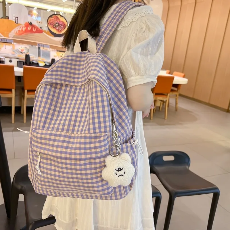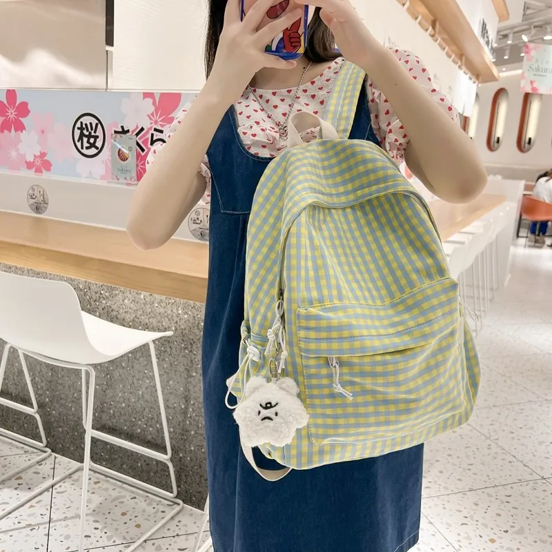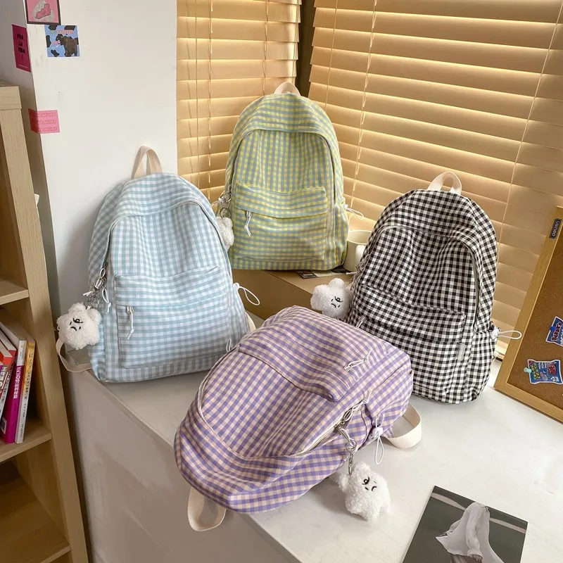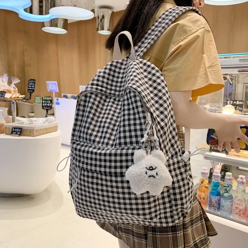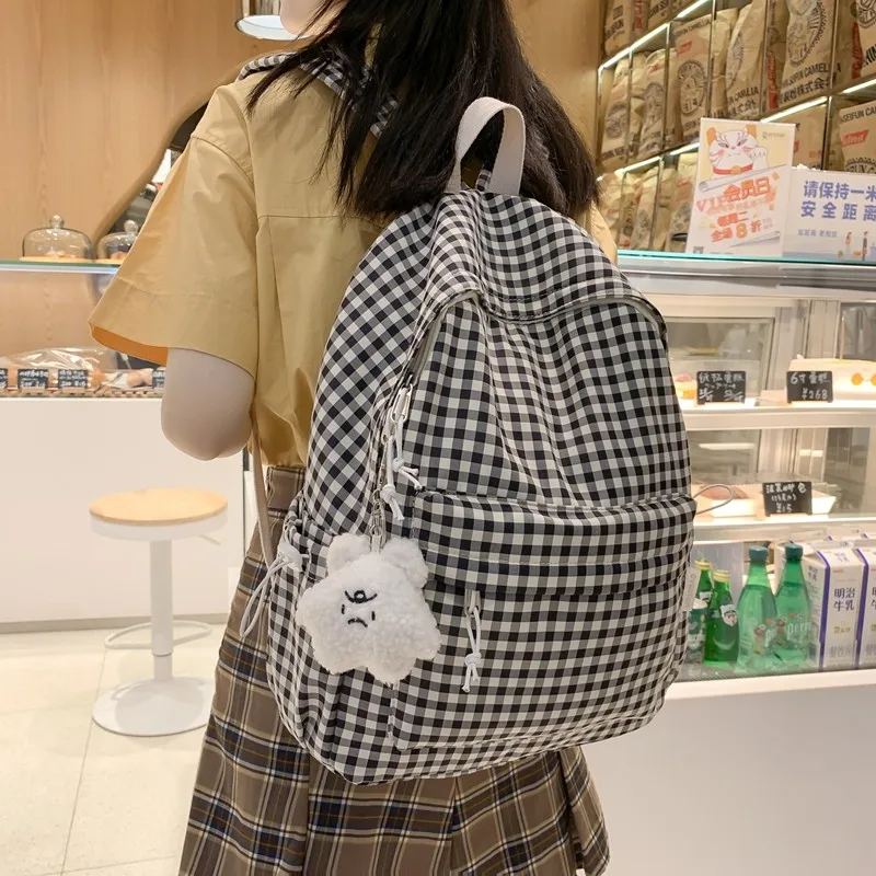 Harajuku стиль женский рюкзак Хлопок тканевая школьная сумка для девочек тренд клетчатые дорожные рюкзаки студенческие большие вместительные сумки для книг