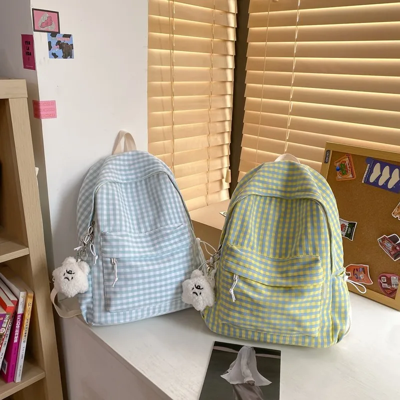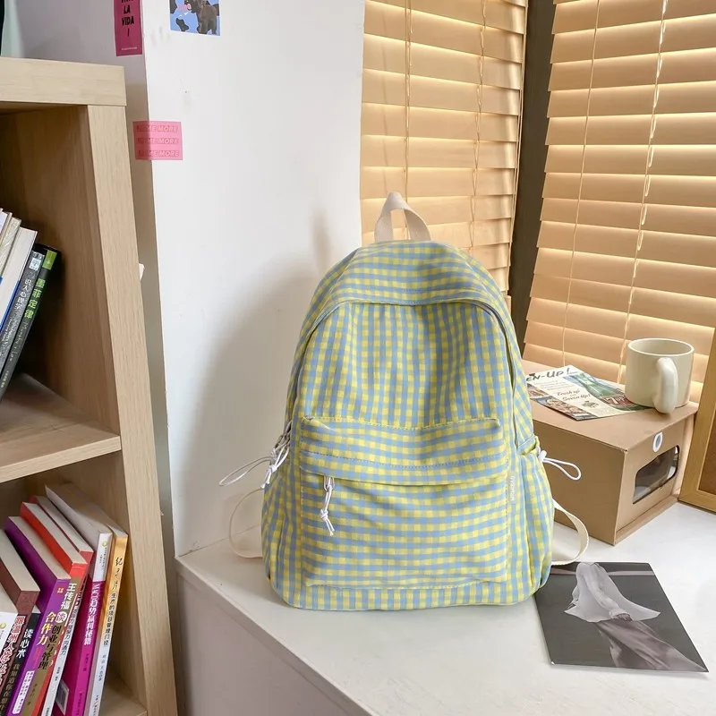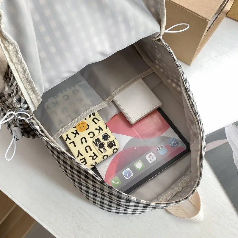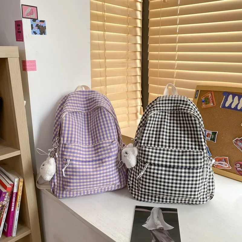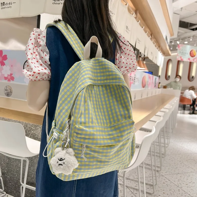 Harajuku стиль женский рюкзак Хлопок тканевая школьная сумка для девочек тренд клетчатые дорожные рюкзаки студенческие большие вместительные сумки для книг