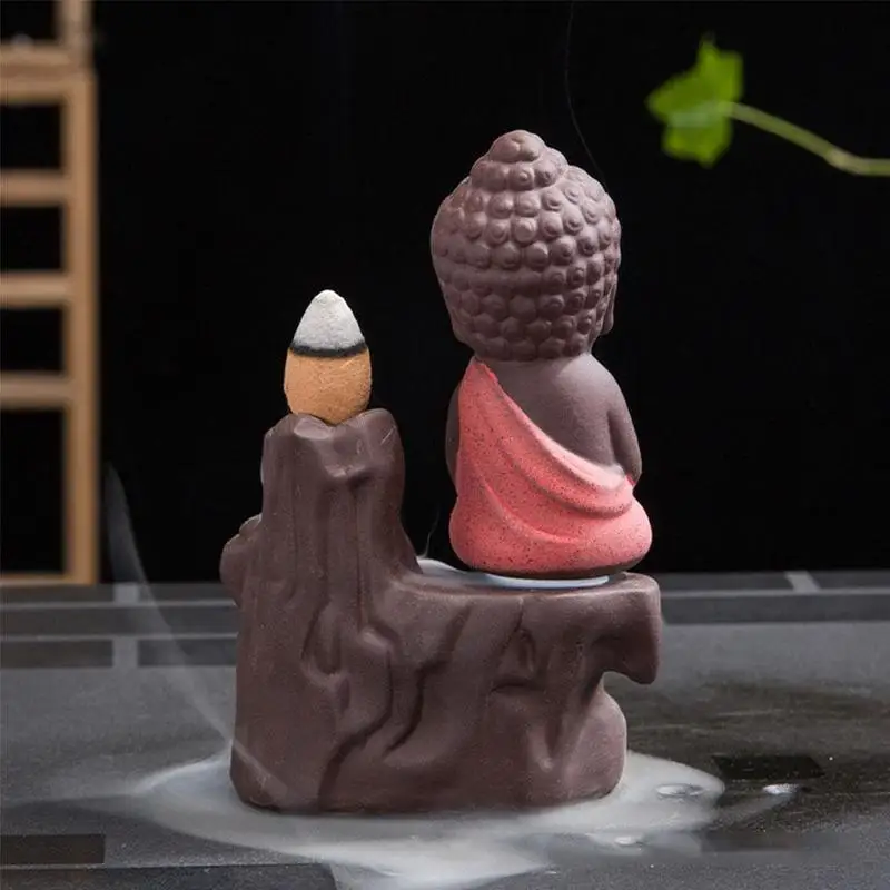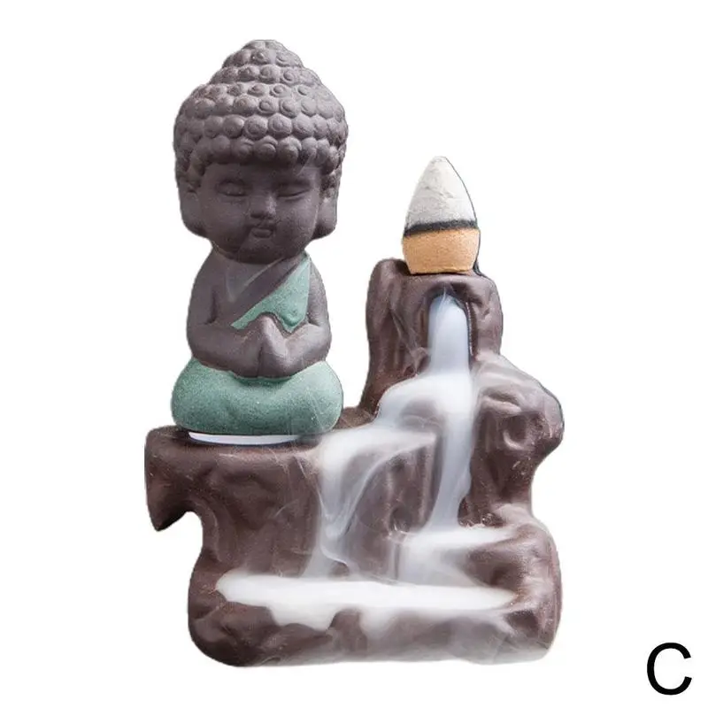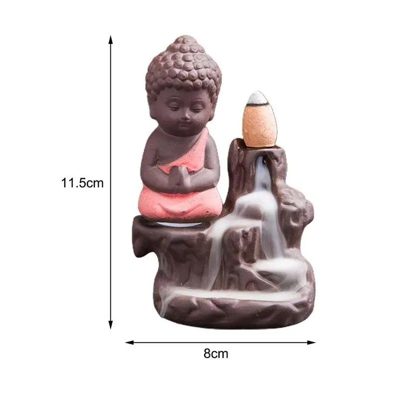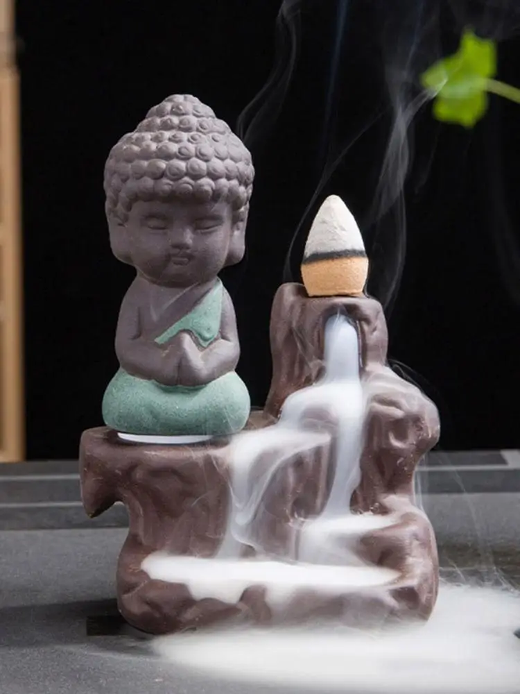 Когда в горелке горит конус ладана, следы дыма имитируют Водопад/облачный туман на вершине горы у основания фигурки
