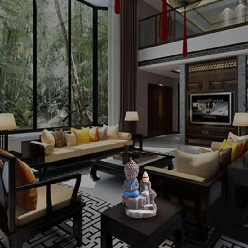 Когда в горелке горит конус ладана, следы дыма имитируют Водопад/облачный туман на вершине горы у основания фигурки