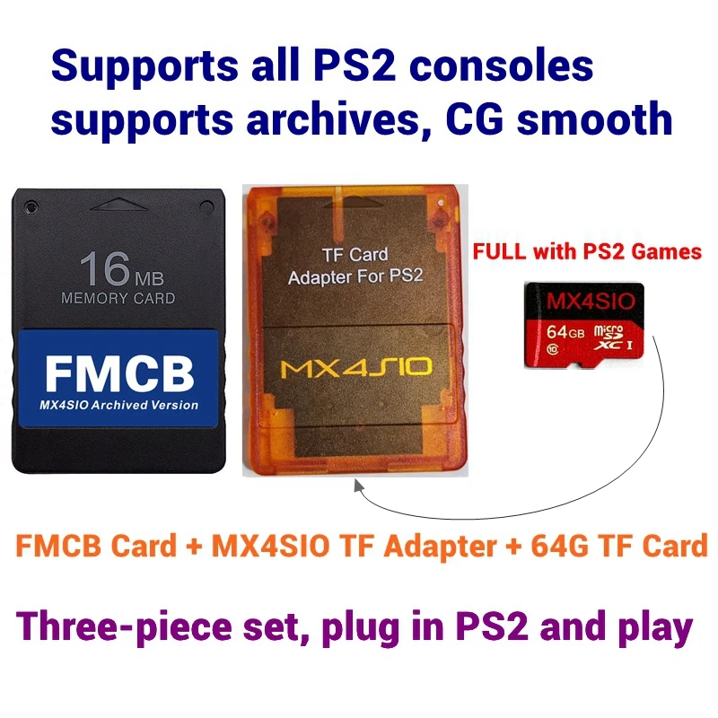 2. При покупке вместе с специальной картой FMCB, наша карта FMCB может использоваться на всех консолях PS2, все толстые и тонкие. И поддерживает хранение данных при воспроизведении игр с помощью адаптера MX4SIO.