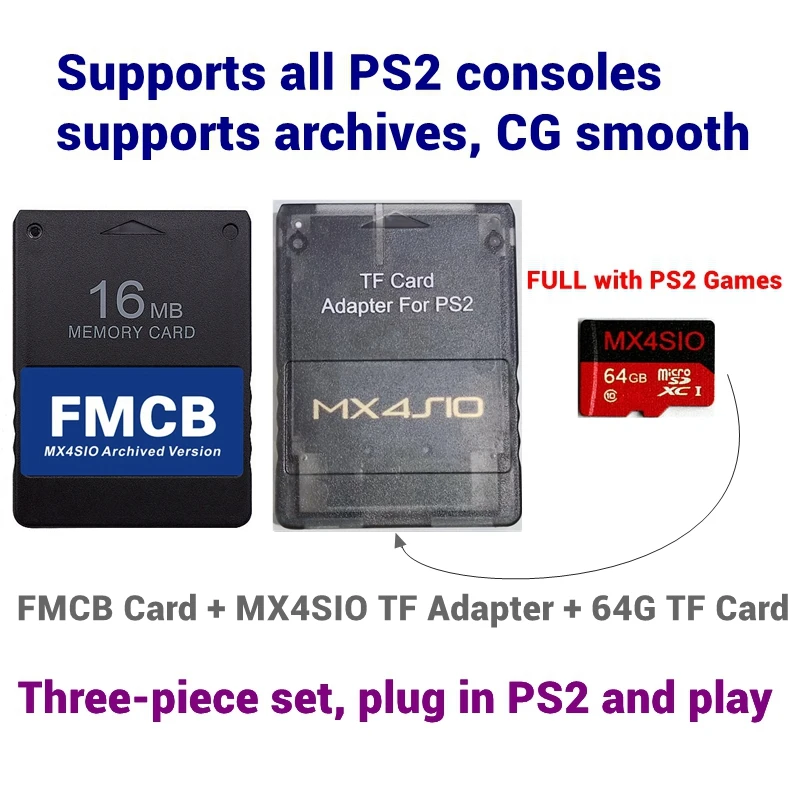 3. Не все SD/TF карты могут быть признаны. После тестирования карты SanDisk brand SD/TF недоступны. Поэтому, пожалуйста, выберите комплект sd-карт из нашего списка или используйте свою собственную карту, все карты тщательно проверяются перед отправкой. Если вы покупаете наш набор из трех частей TF/SD карты, карта заполнена играми PS2, вы можете начать играть, когда получите товар, и консоль может быть использована без оптического привода. Для некоторых карт TF/SD, консоль PS2 перезапускается или OPL мягкий Сброс, PS2 игры не будут отображаться в списке OPL, а карта TF/SD должна быть повторно подключена и отключена для отображения. Эта специальная TF карта MX4SIO, которую мы настроили, не имеет такой проблемы.