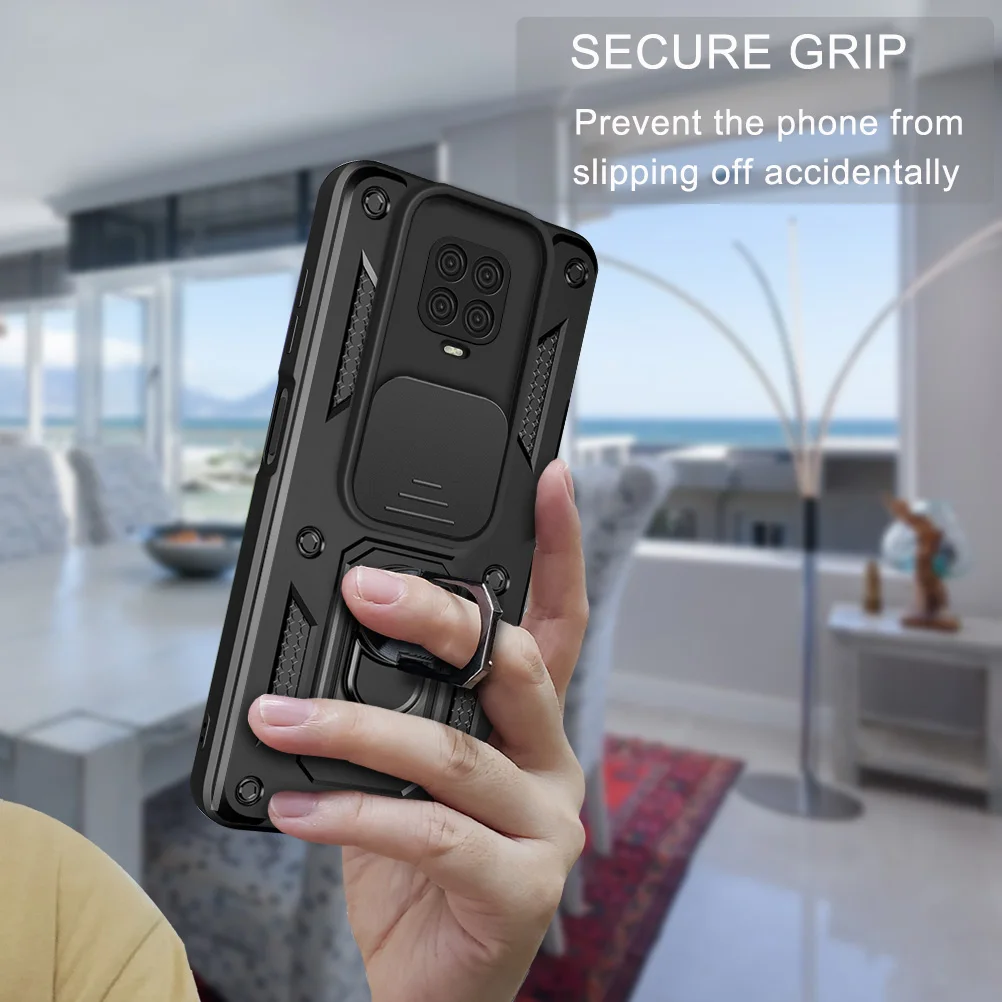 [New Upgrade design]- Ring bracket and slide camera cover protect phone better.