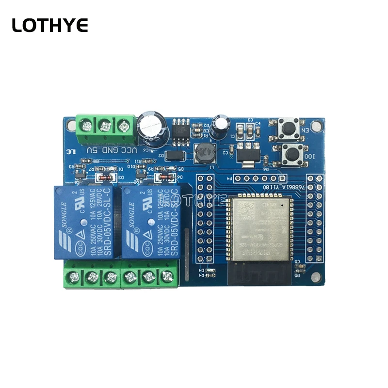 The DC power supply ESP32 dual relay development board is equipped with ESP32-WROOM-32E WiFi&BLE module, I/0 ports are all led out, and supports DC5-60V power supply mode. It is suitable for ESP32 secondary development and learning, smart home wireless control and other occasions.