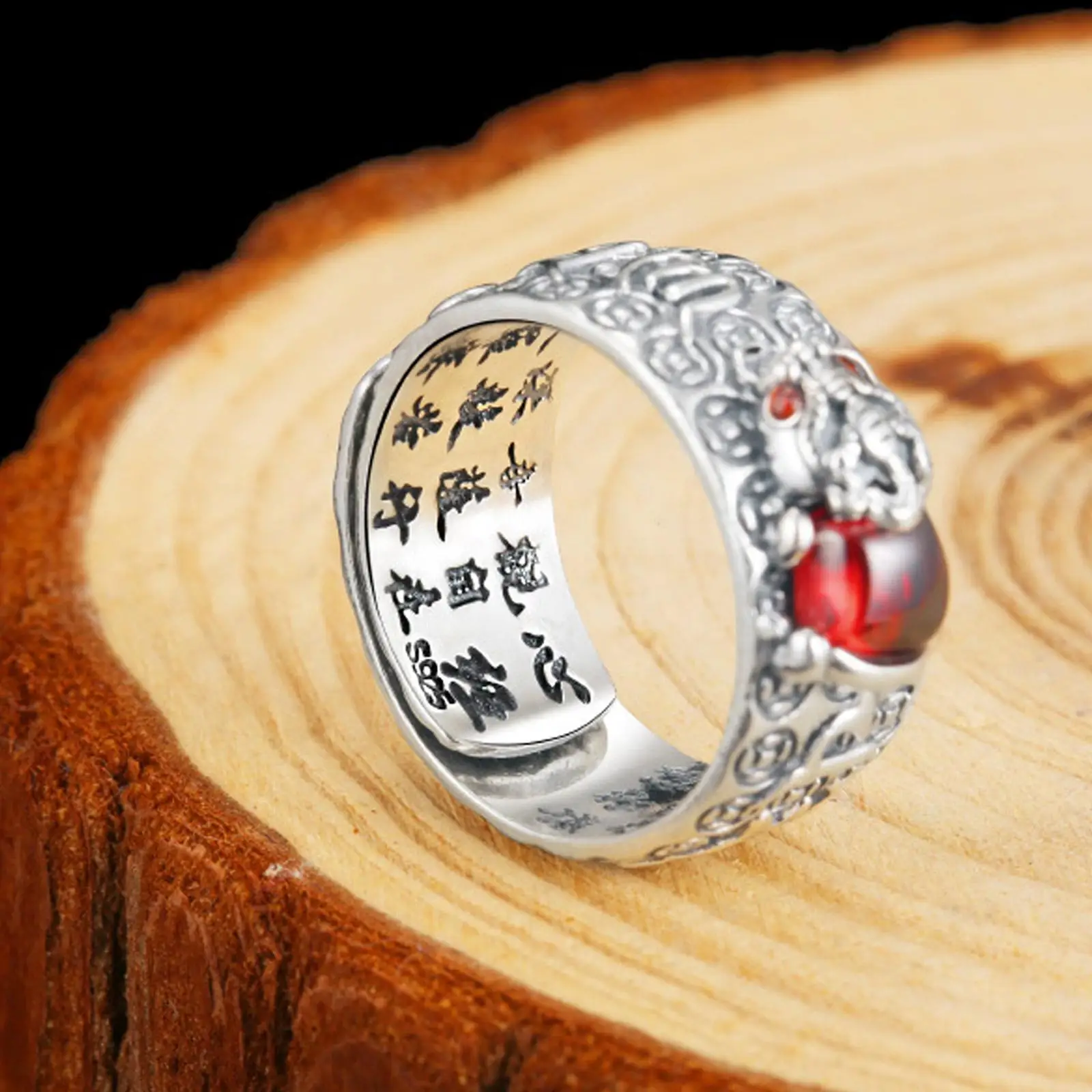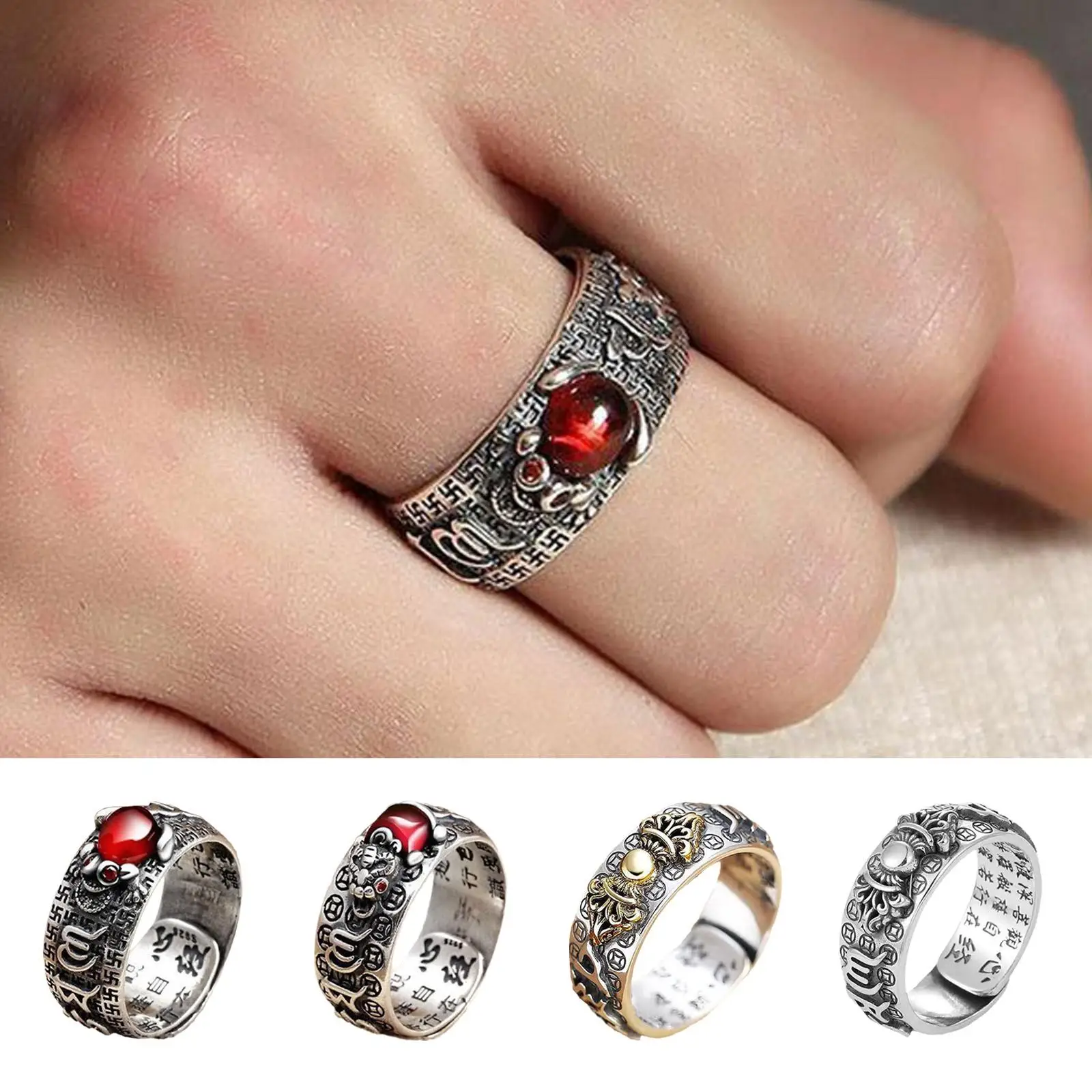 Нежное кольцо с красным гранатом с приятным украшением на пальцах.
