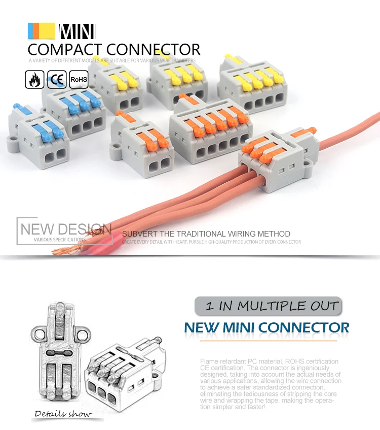 Абсолютно новый компактный 3/4/5/6 контактный пружинный проводник соединяющий клеммный блок быстрый Электрический кабель толчок в провод разъем 213 214 215