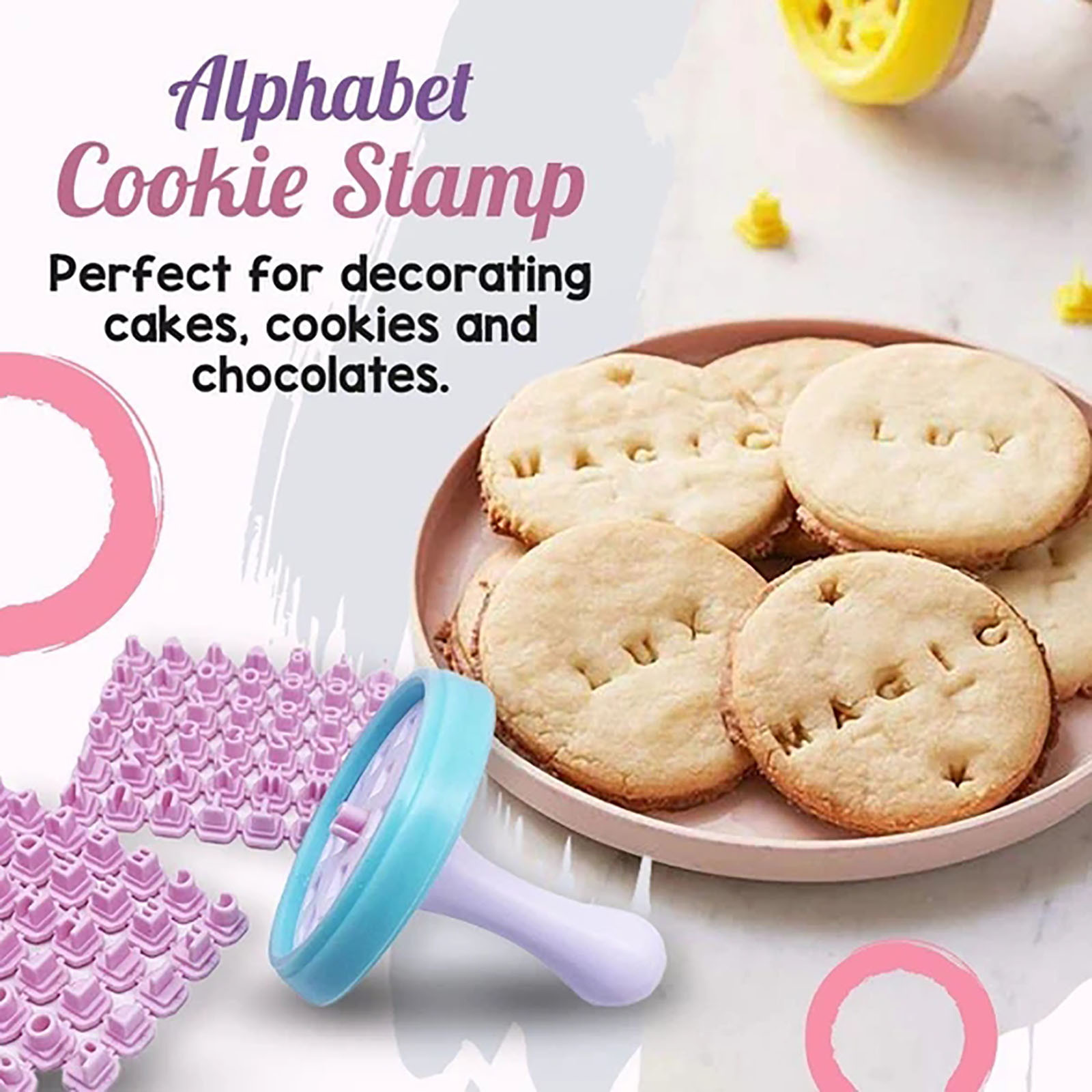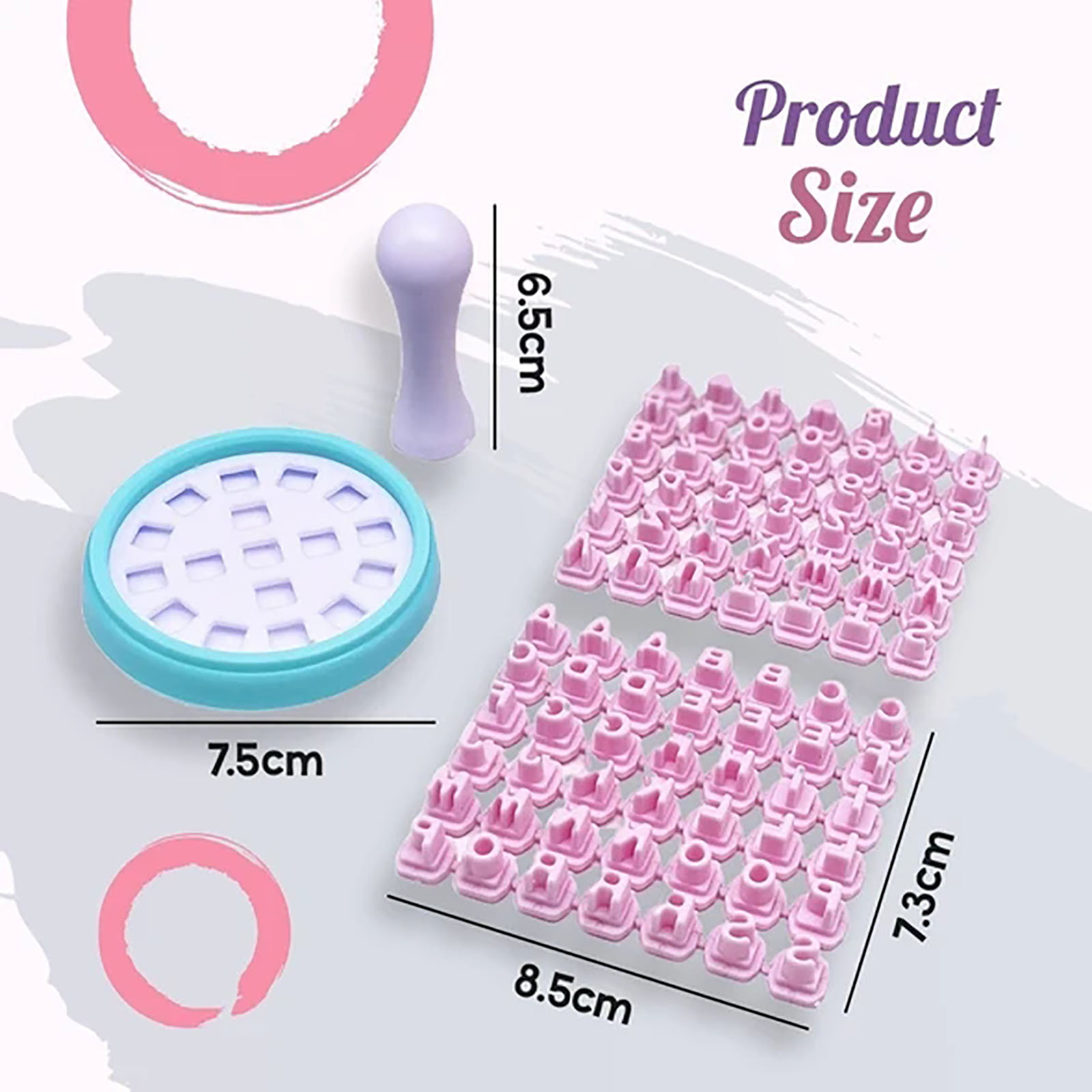 Сообщение с печатью-Добавляет человекаAlTou-chНа печенье с милыми сообщениями вы можете легко наклеить. Легко взаимозаменяемый-Штампы легко вставляются и выталкиваются из держателя. Аккуратное расположение-Отверстия в держатель штампа аккуратно расположены для идеально выровненных сообщений.Полный набор штампов-Поставляется с полным набором букв, цифр и милых символов.