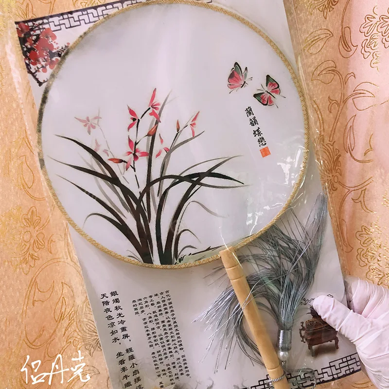 Long Handle Bronzing Fan Transparent Antique Round Chinese Palace Fan Dance Props Classical Hanfu Cheongsam Accessories