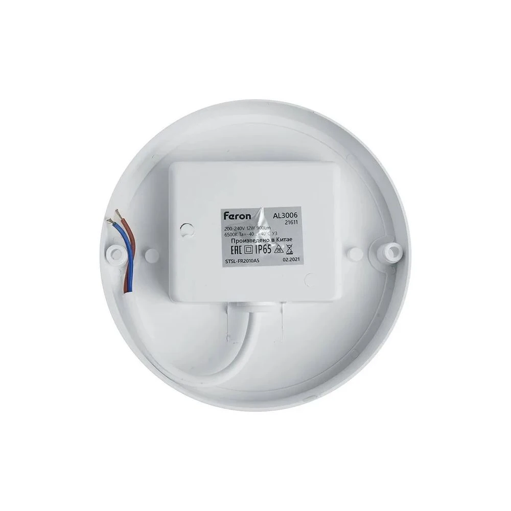 Светильник накладной светодиодный, пылевлагозащищённый (ДПБ) FERON AL3006, 12W, 6500К (дневной), 200-240V, 900Lm, IP65, угол рассеивания 120°, цвет белый, корпус пластик, рассеиватель пластик, 135*135*50