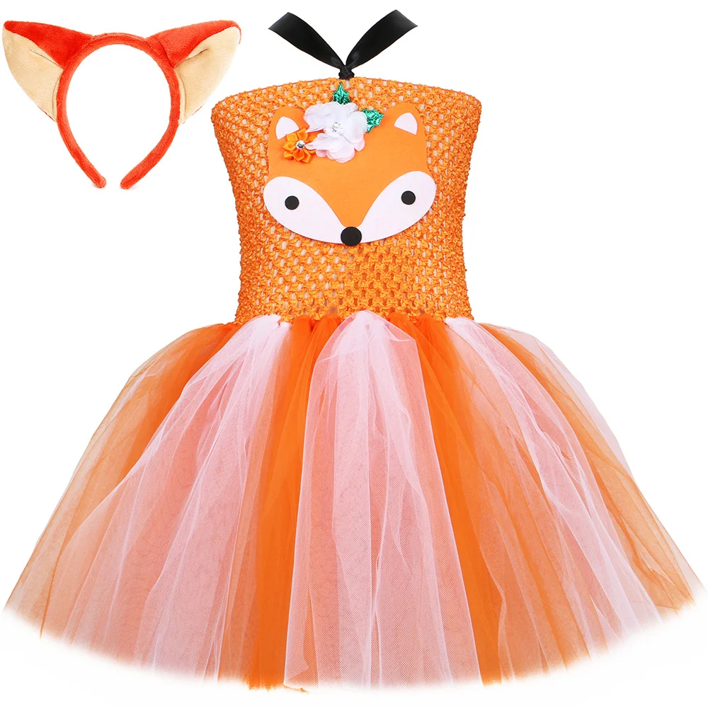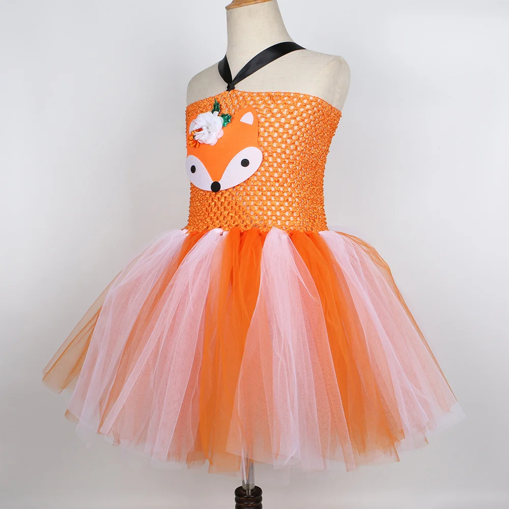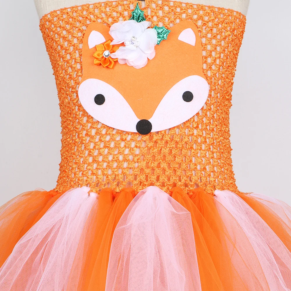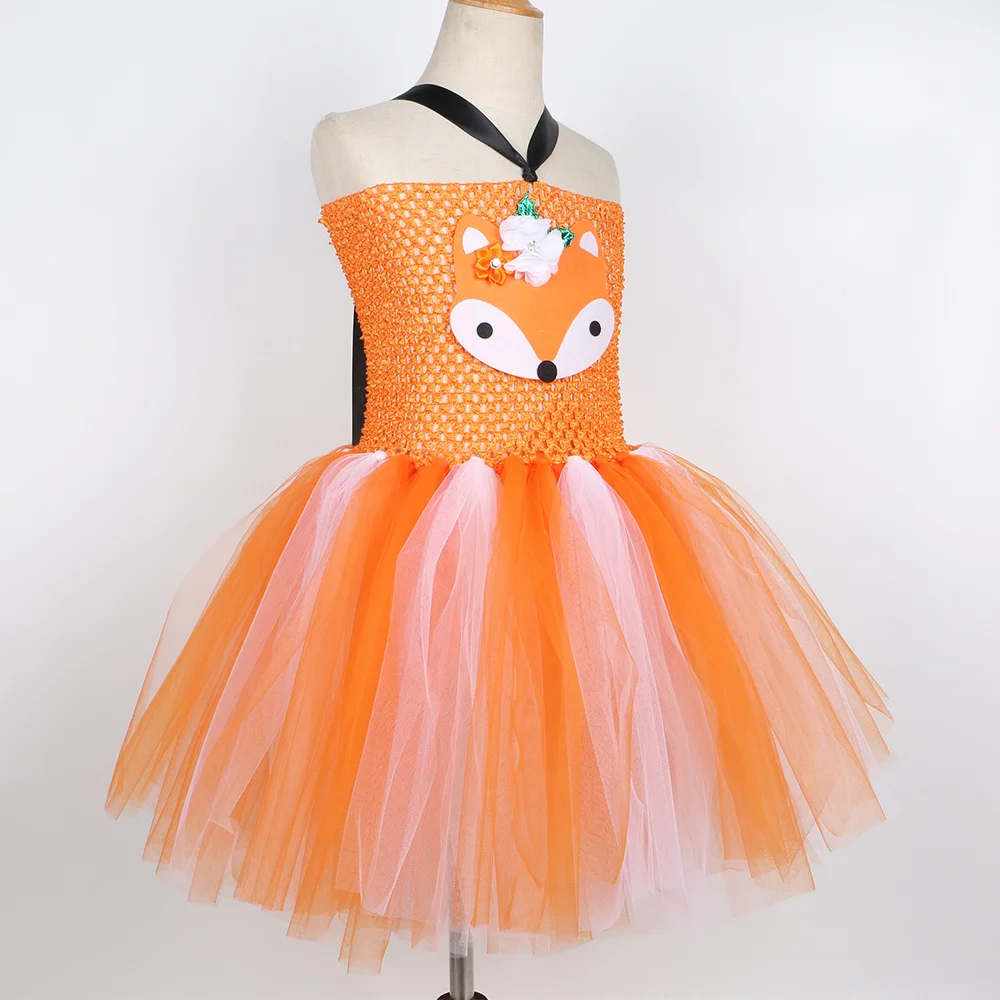 Платье-пачка с оранжевой лисой; Вечерние платья для девочек на день рождения; Детские платья из тюля для девочек; Костюм для костюмированной вечеринки с изображением сумасшедшего животного лисы Ника