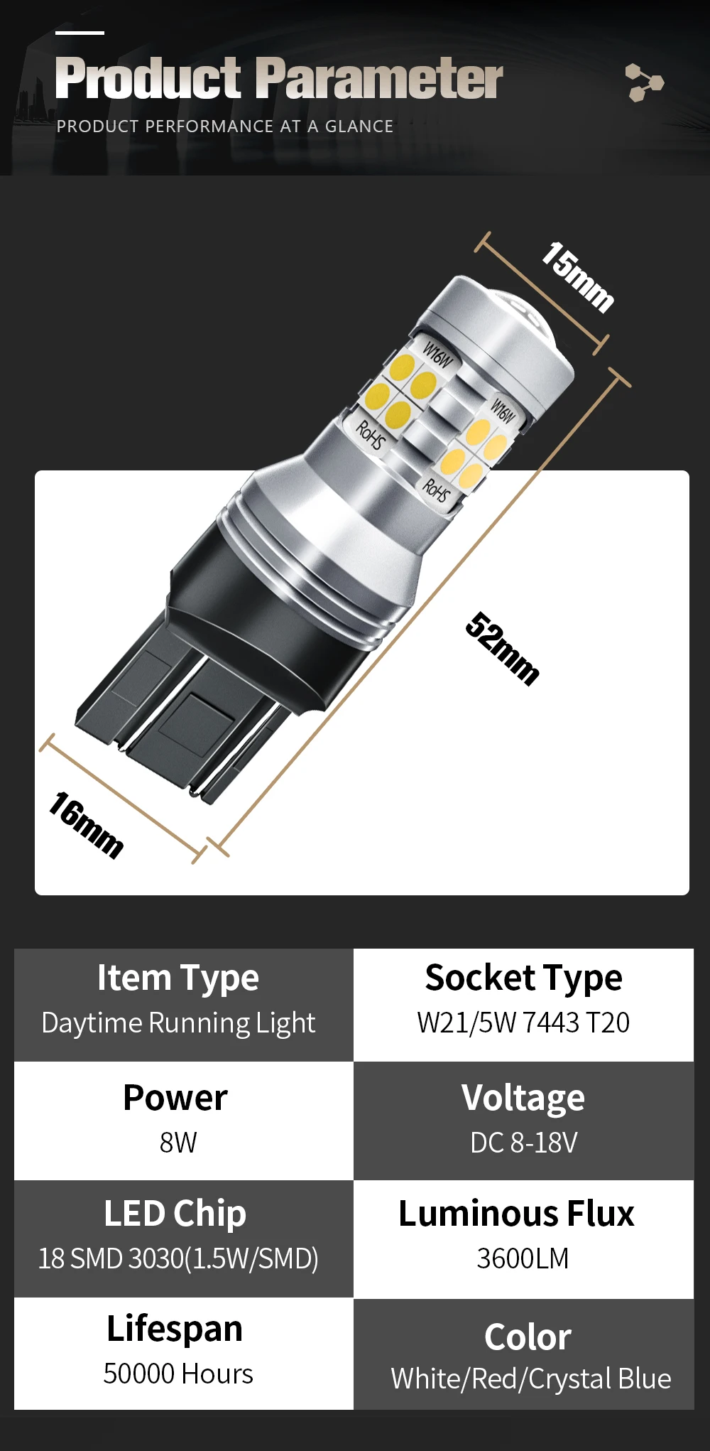 2. Тип разъема: W21/5W,7443,W21W,7440,T20