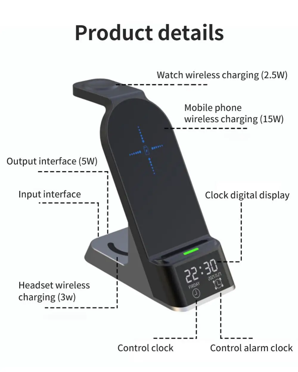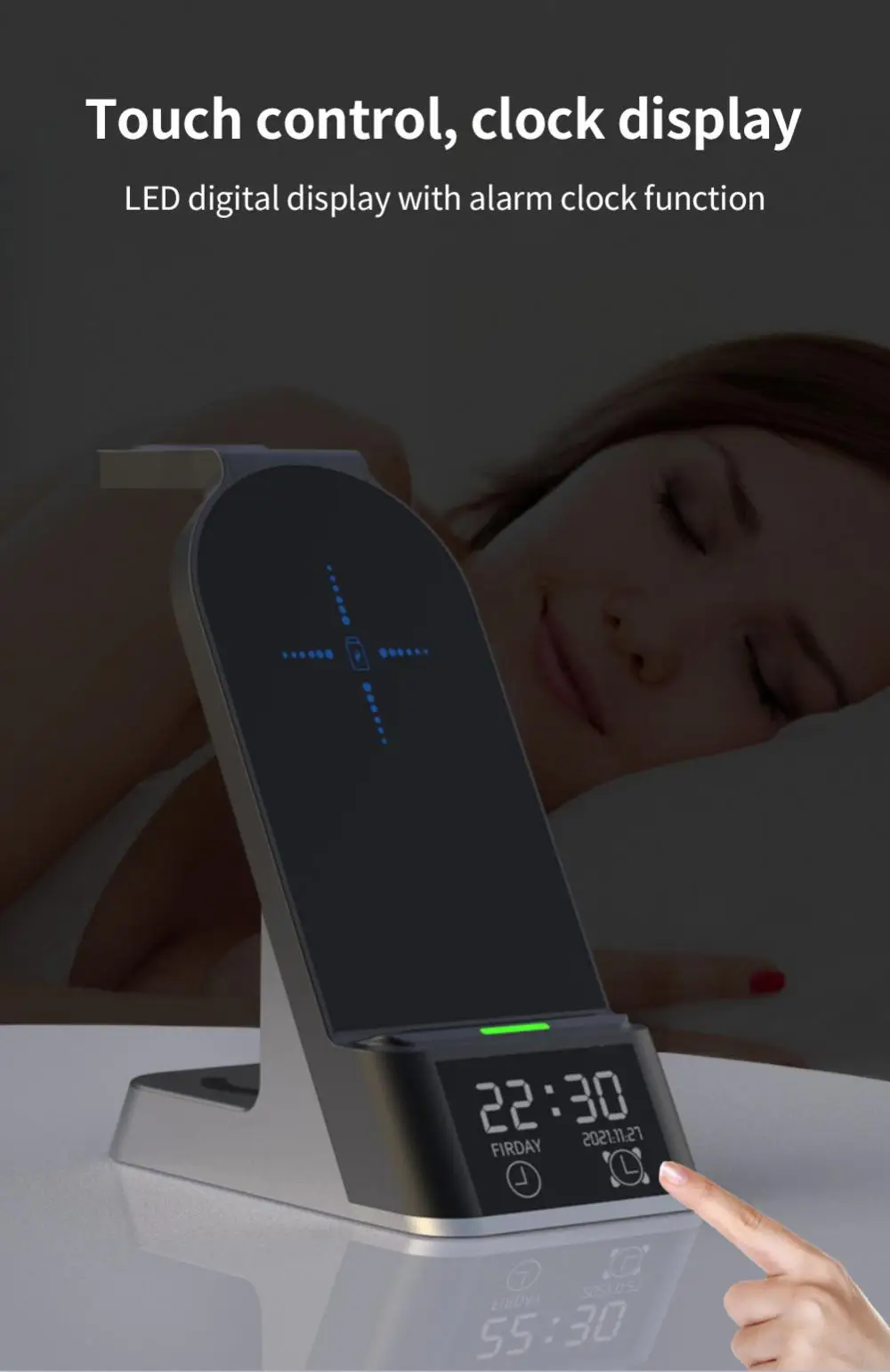 H36 6-в-1 быстрая зарядная станция Многофункциональный Будильник Беспроводное зарядное устройство для Apple Watch AirPods 3 IPhone13 зарядка 15 Вт