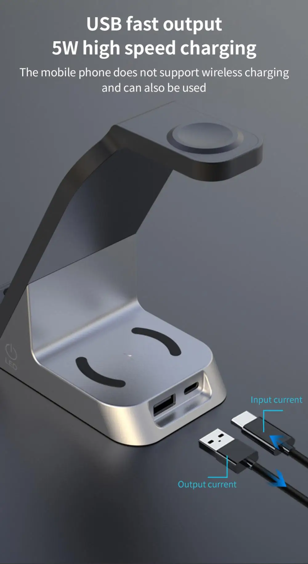 Беспроводная Зарядная Станция 6 в 1 заряжает несколько устройств, все сразу, включая сочетание телефонов, Airpods и Apple Watch, все через простой кабель micro USB, что означает, что требуется только 1 вилка.