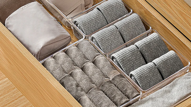 7 шт. лоток для выдвижных ящиков, прозрачный разделитель для макияжа, кухонная утварь для ювелирных изделий и белья, ящики для хранения носков, комод для ванной комнаты, офисный Органайзер