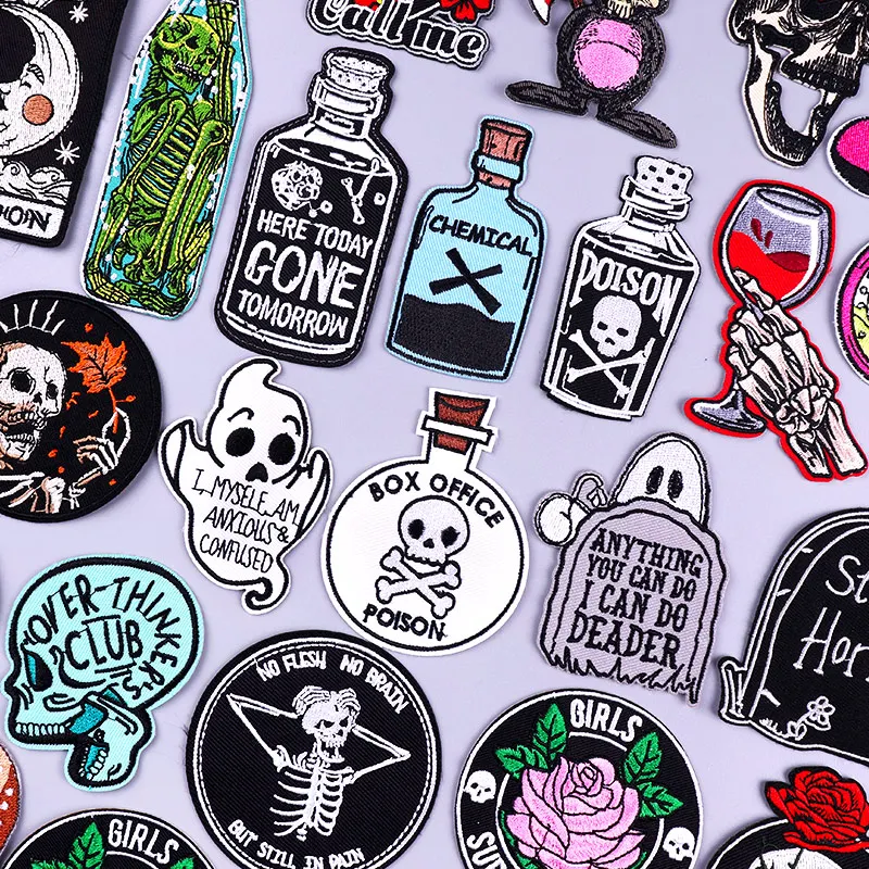 Череп цветы вышивка патч для одежды Панк Скелет наклейки Патчи на одежду Сделай Сам железо на патчи для одежды значки