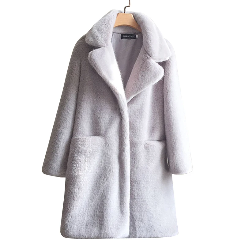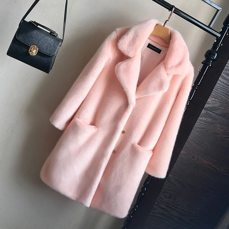 Женское Норковое Пальто с искусственным мехом, однотонное Женское пальто с отложным воротником, зимнее теплое пальто с искусственным мехом, повседневная куртка