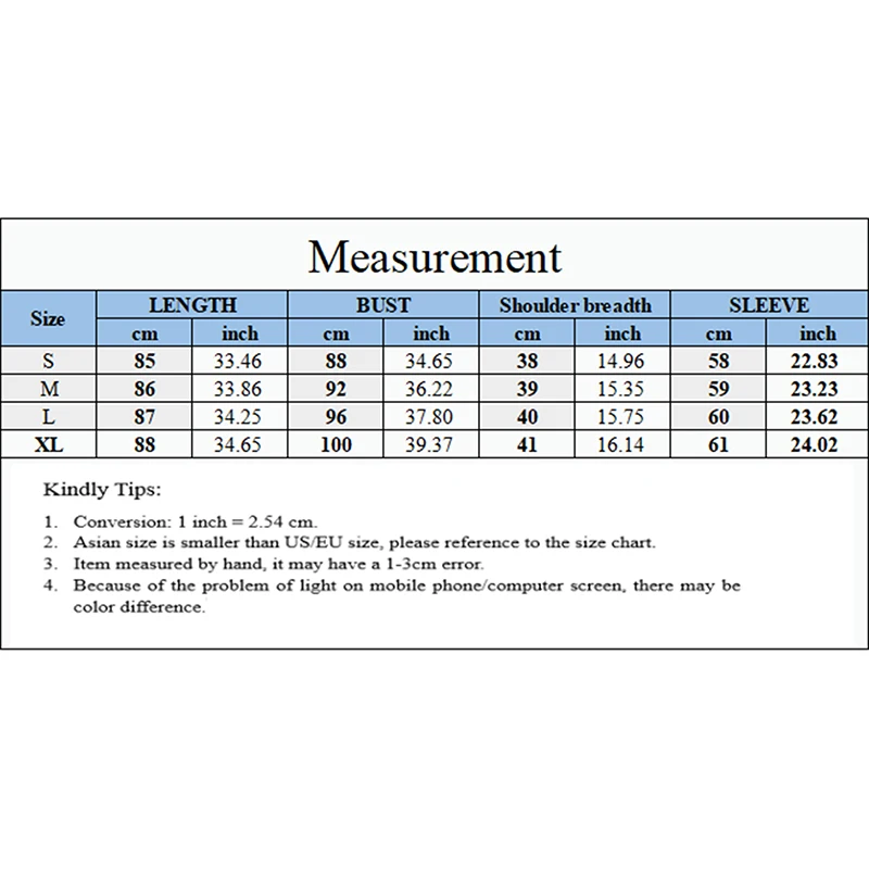 О цвете:Как вы знаете, различные компьютеры отображают цвета по-разному, цвет фактического товара может незначительно отличаться от приведенных ниже изображений.О размере:1. Пожалуйста, внимательно проверьте таблицу размеров перед покупкой товара. Если вы не знаете, как выбрать размер, пожалуйста, свяжитесь с нашей службой поддержки клиентов2. Замеры сделаны вручную, поэтому возможны отклонения на 2-3 см.(1 см = 0,39 дюйма, 1 дюйм = 2,54 см)3. Выберите больший размер, если ваш размер между двумя размерами.