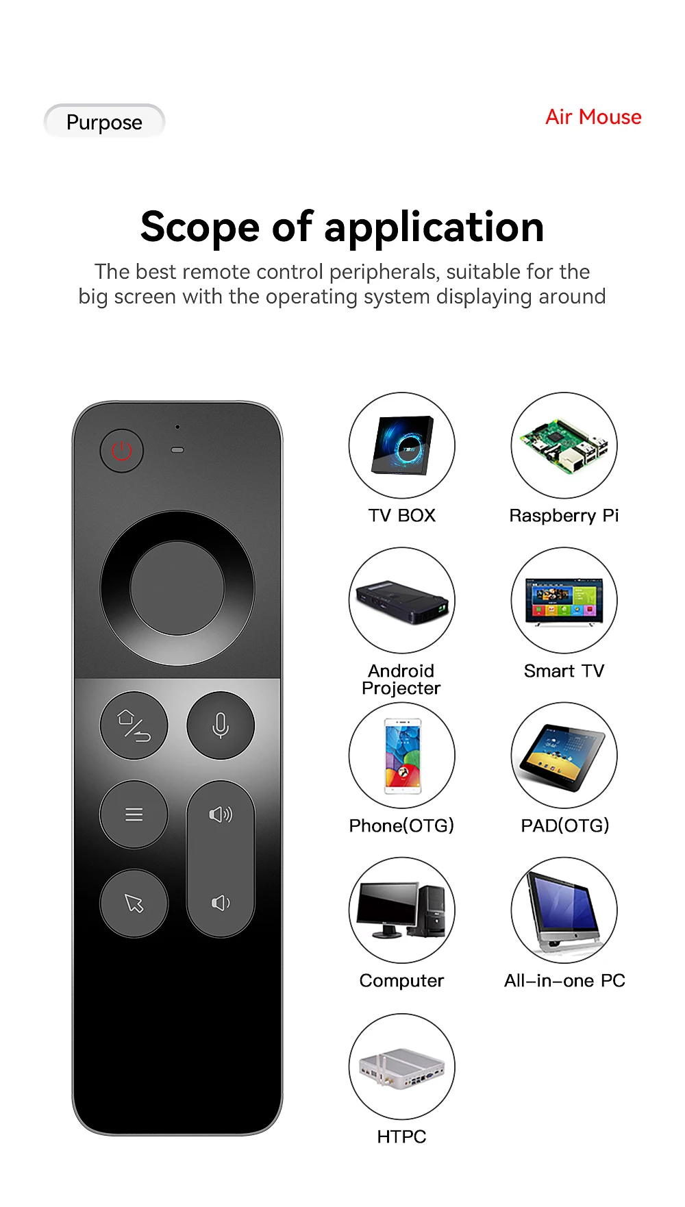 Он может предоставить людям уникальный и способный инструмент для управления их ПК, smart TV, Android TV Box, медиаплеер, телеприставка просто перемещая его прямо в воздухе.