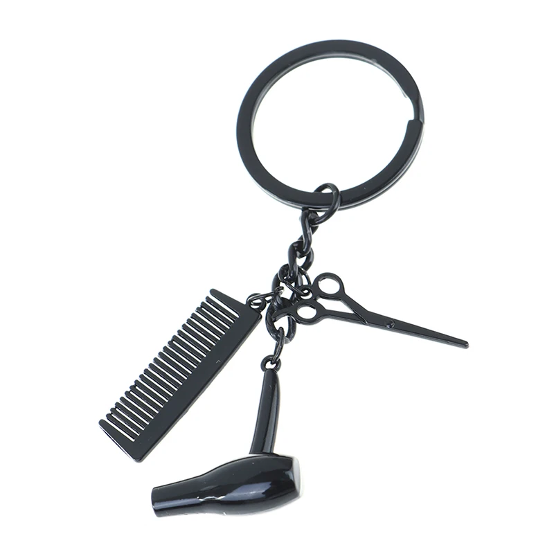 Barber Shop Tool Key Ring Simulation Hair Dryer Scissors Comb Pendants Keychain