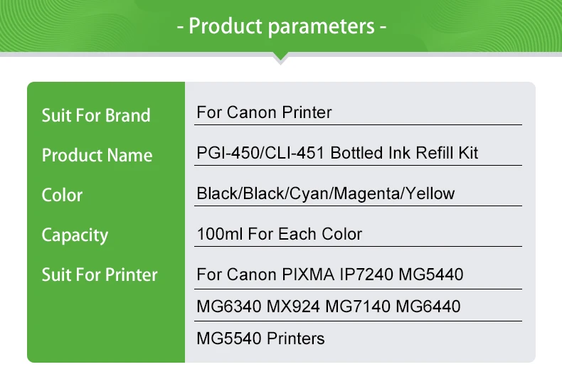 1 шт. X 100 мл чернильные краски для бутылок для CanonPGI 450Black цвет.