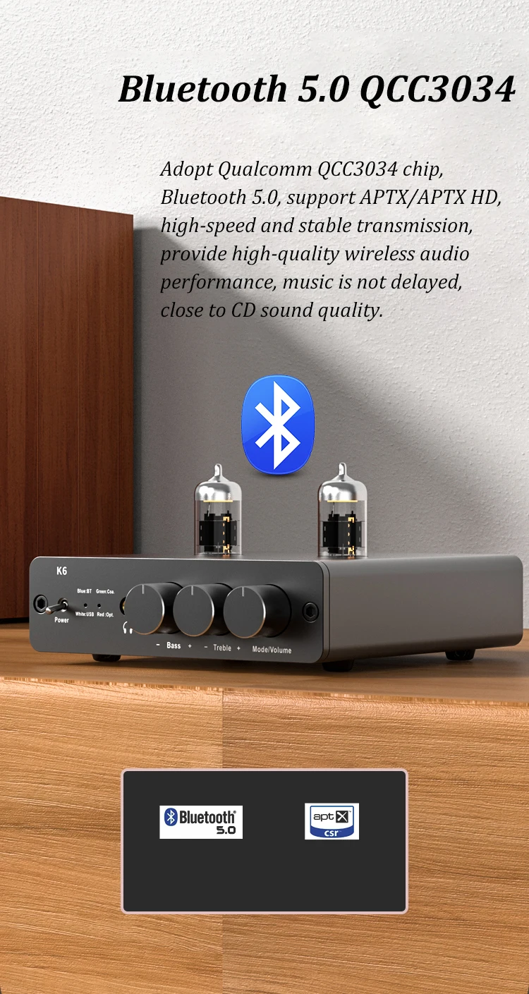 Bluetooth module: Bluetooth 5.0 supports SBC, AAC, APTX, APTX-HD