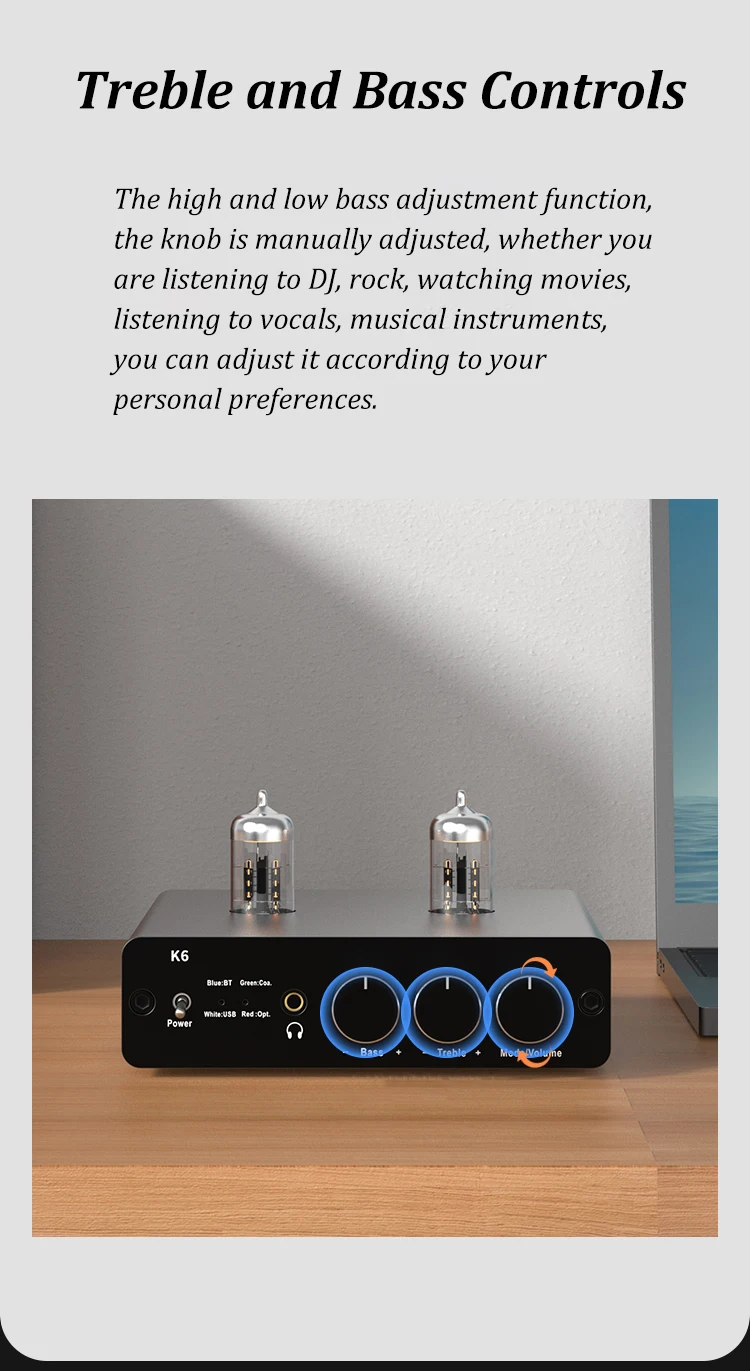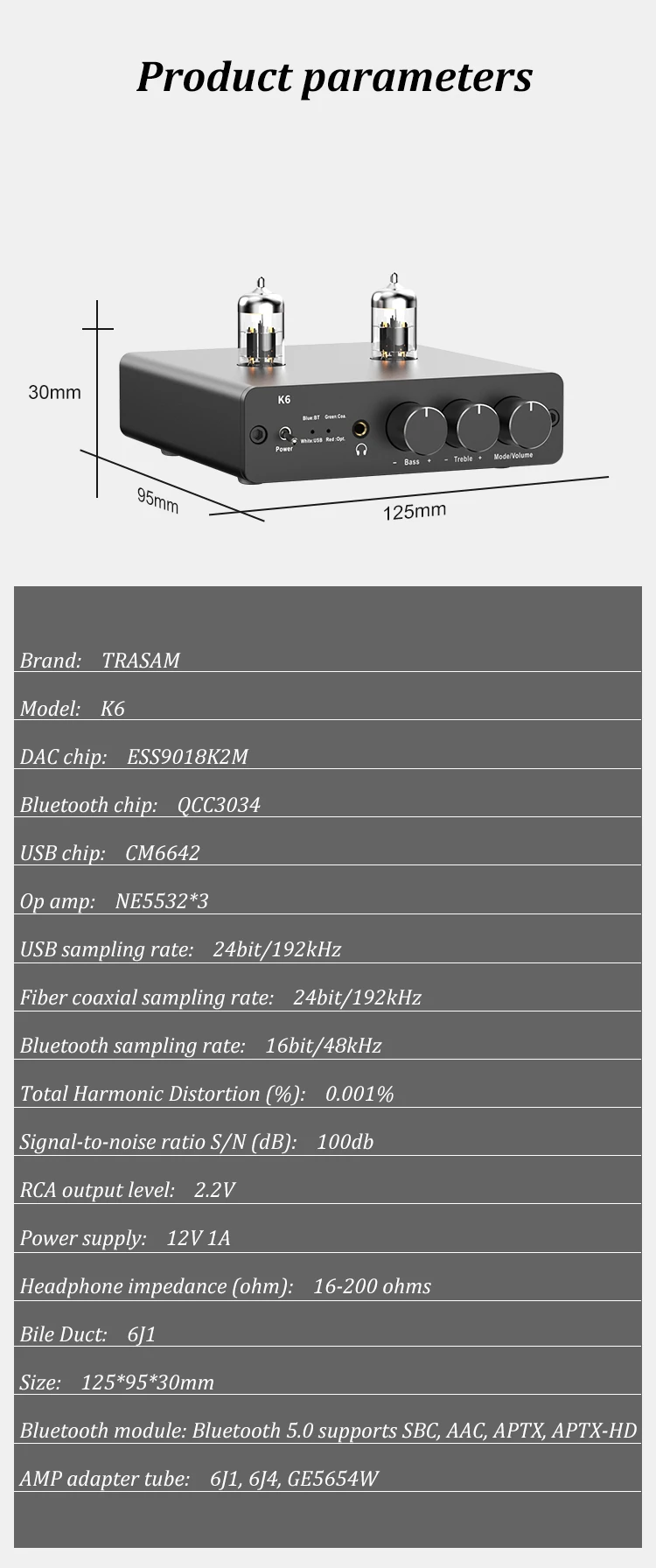 TRASAM Tube Headphone Amplifier USB DAC ES9018K2M Preamplifier 24Bit 192KHz Bluetooth 5.0 APTX-HD HiFi Audio Preamp Earphone AMP