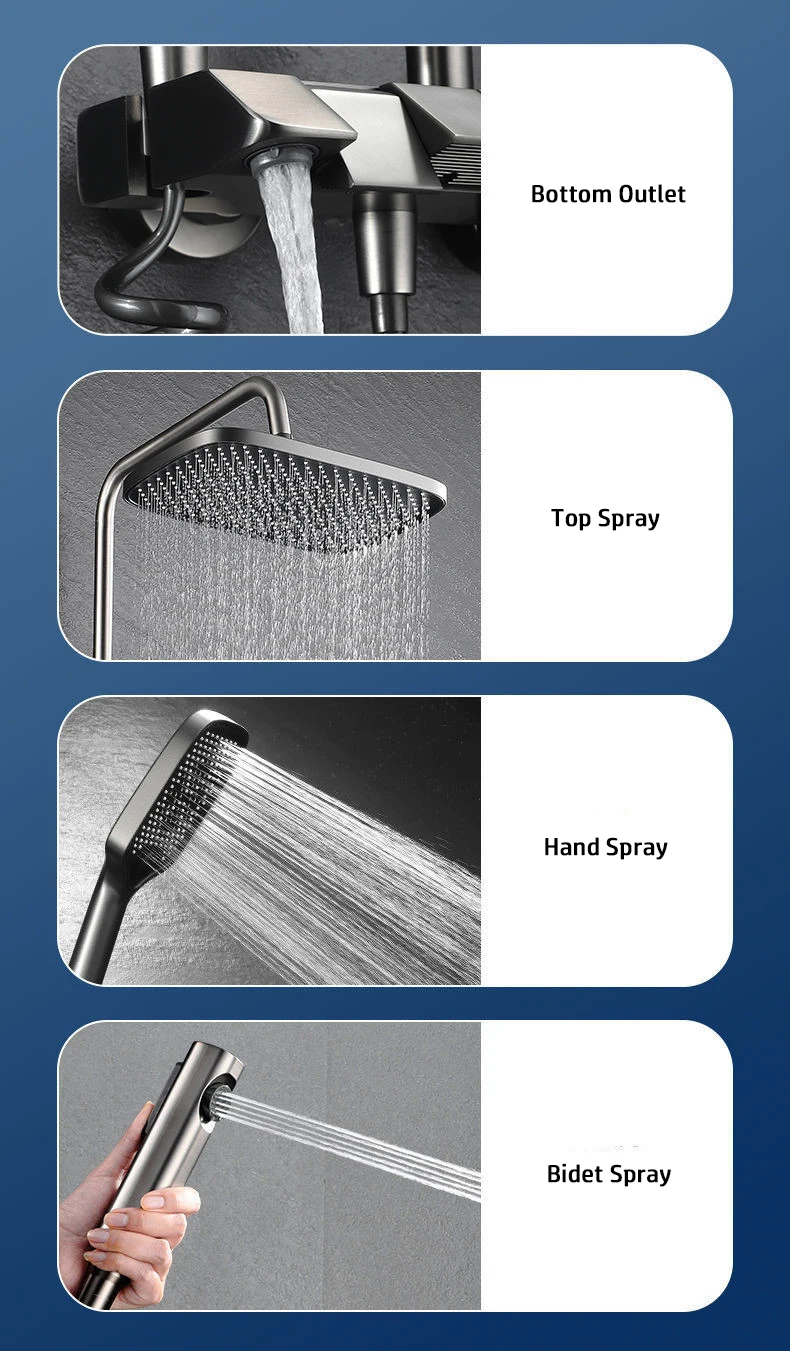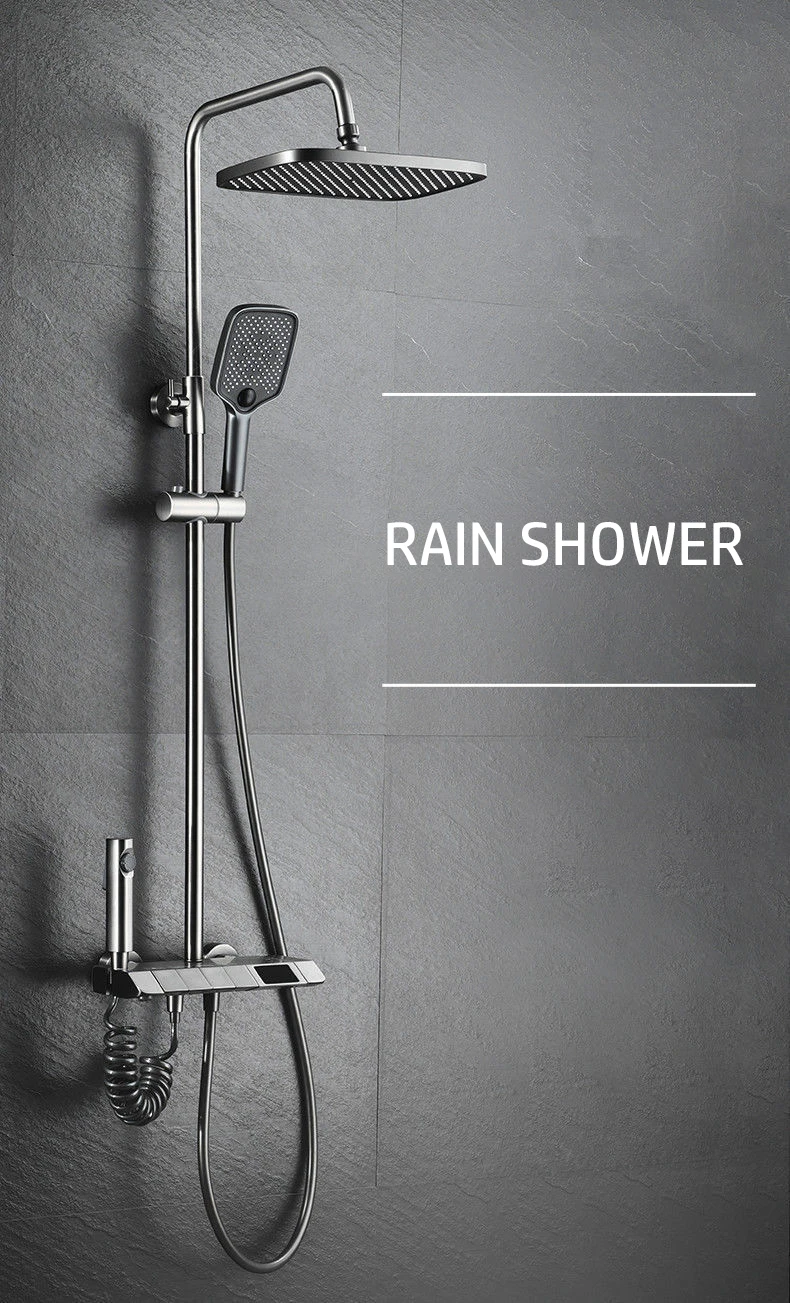 Термостатический набор для душа, ванная комната, горячий холодный смеситель, Душевая система, ванна, настенное крепление, спа, душ, кран, светодиодный, цифровой, смесители для дождя