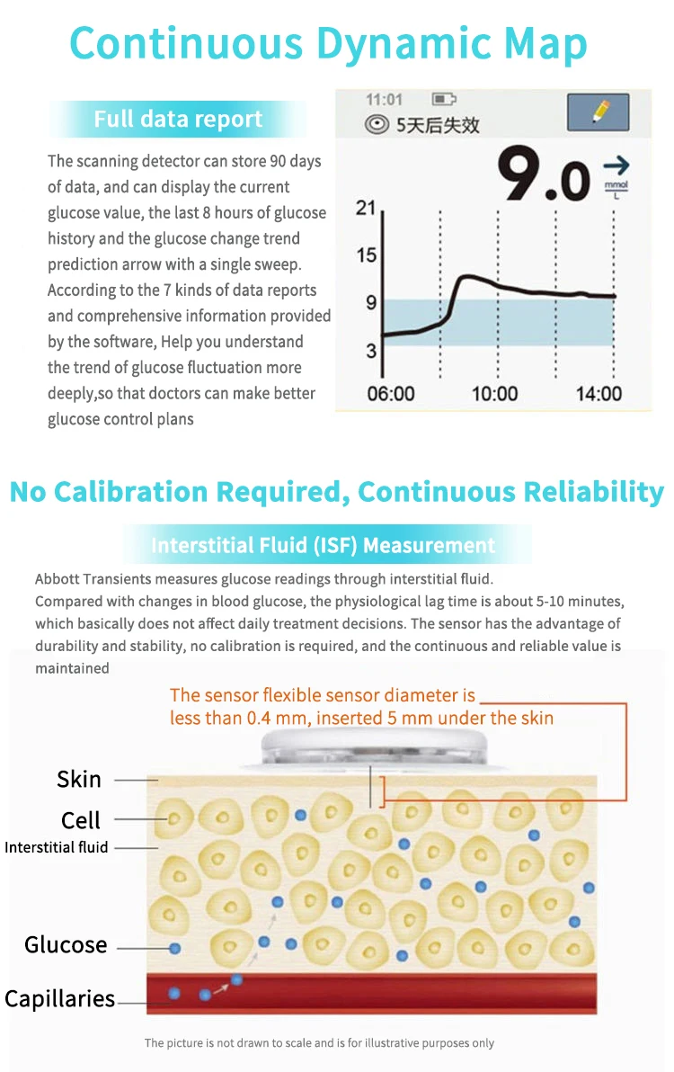 Датчик является основным элементом для получения полного изображения изменения уровня глюкозы, поэтому не забудьте выбрать правильное место для датчика и установить с осторожностью: