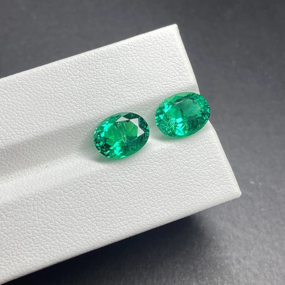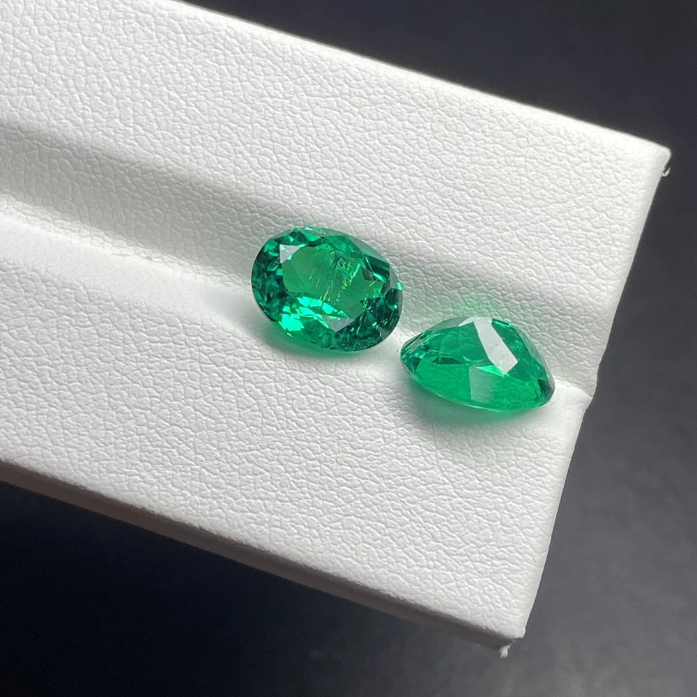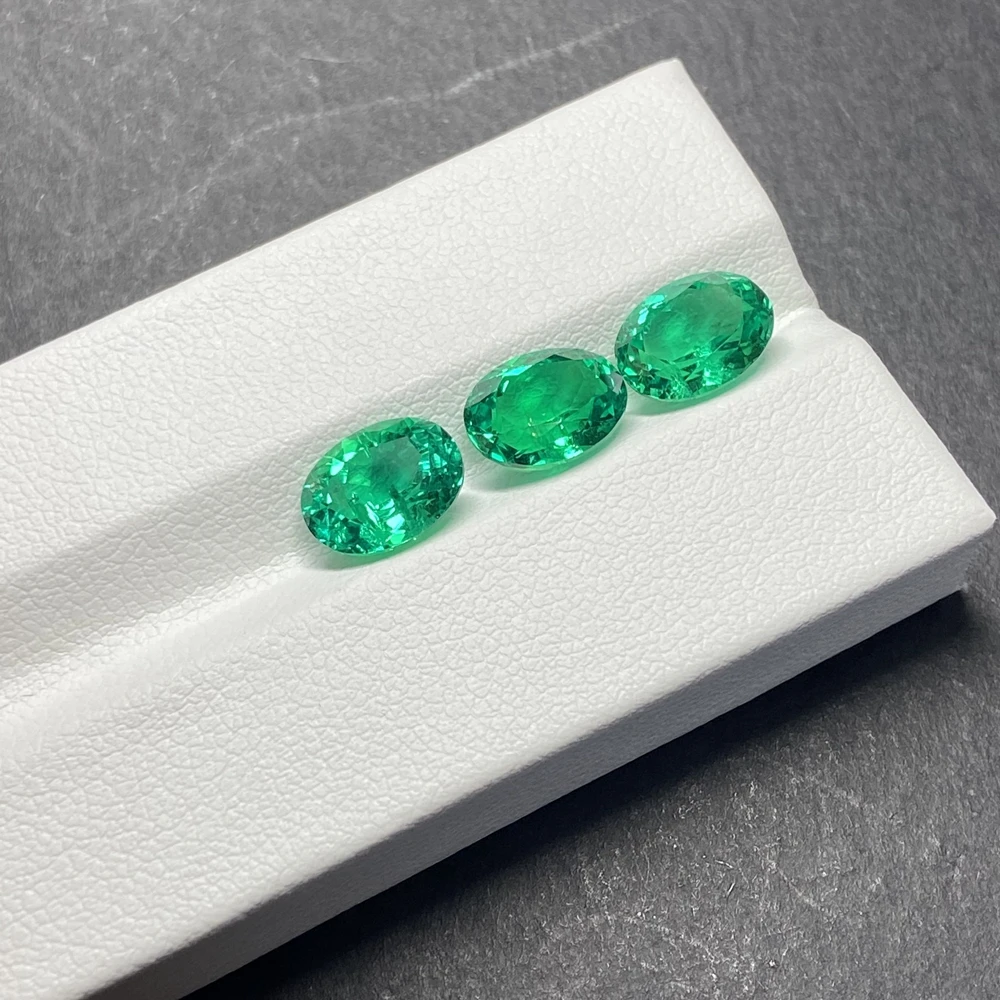 Meisidian 3x5 4x6mm Oval Cut Laboratory Hydrothermal Columbia Green Emerald Stone For Women Gold Ring Making